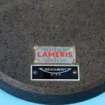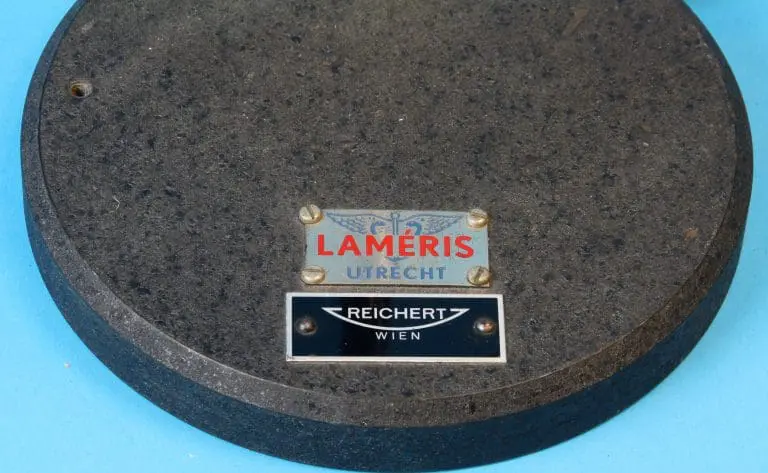 Op de voet een metalen plaatje van de verkoper (LAMÉRIS / UTRECHT).