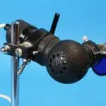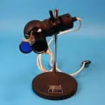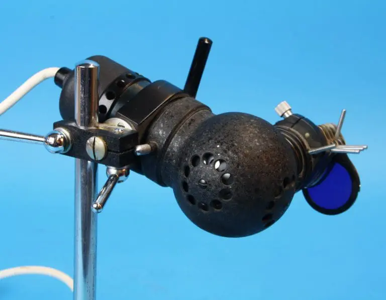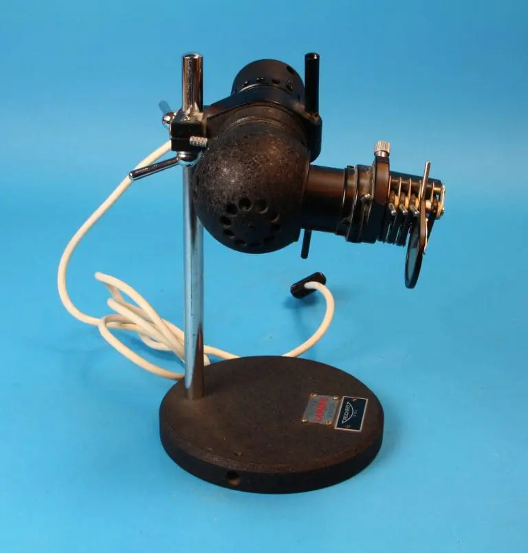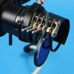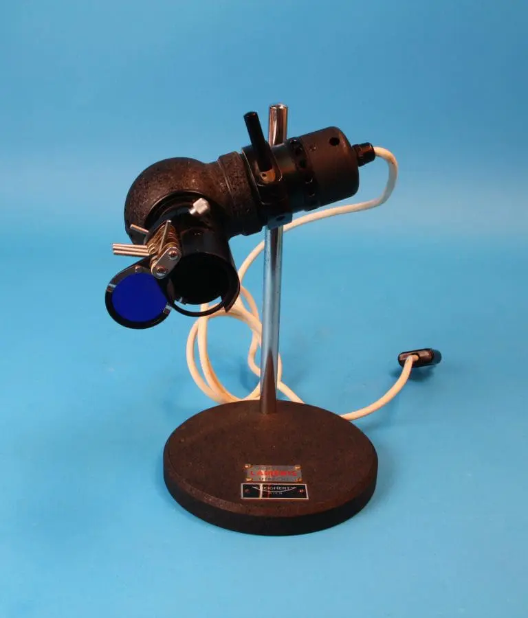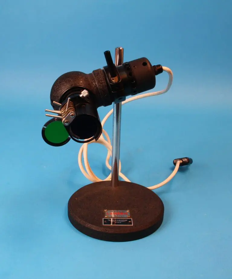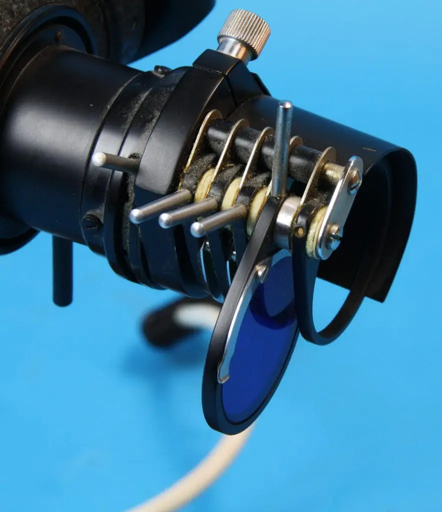 Microscooplamp met kleurenfilters (tweemaal groen, tweemaal blauw).