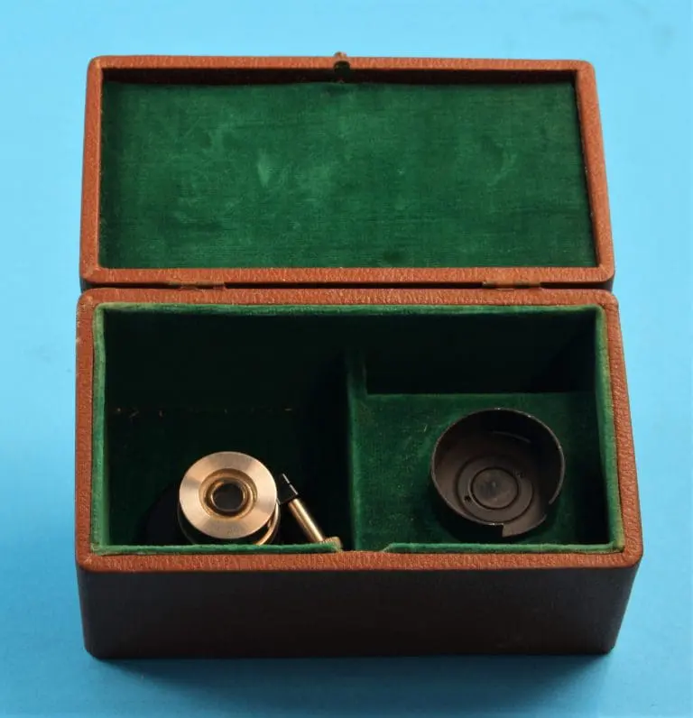 In het doosje twee oculairen: een polarisator (ongesigneerd) en een analysator (gesigneerd Busch).
