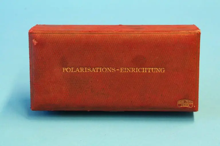 In het kistje een ‘Polarisator I’, bestaande uit een in kurk gevat prisma volgens Nicol. Zeiss geeft aan dat deze polarisator bestemd was voor de statieven I, III en IV, dat wil zeggen de grotere statieven, zoals bijvoorbeeld SM 36 en SM 413. De polarisator wordt in de juiste stand in de uitklapbare diafragmahouder onder de condensor gelegd en met een ring vastgeschroefd.