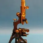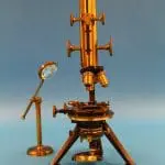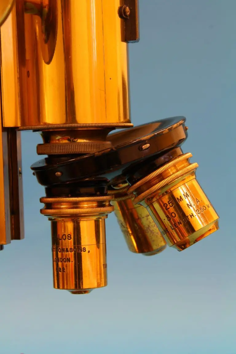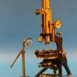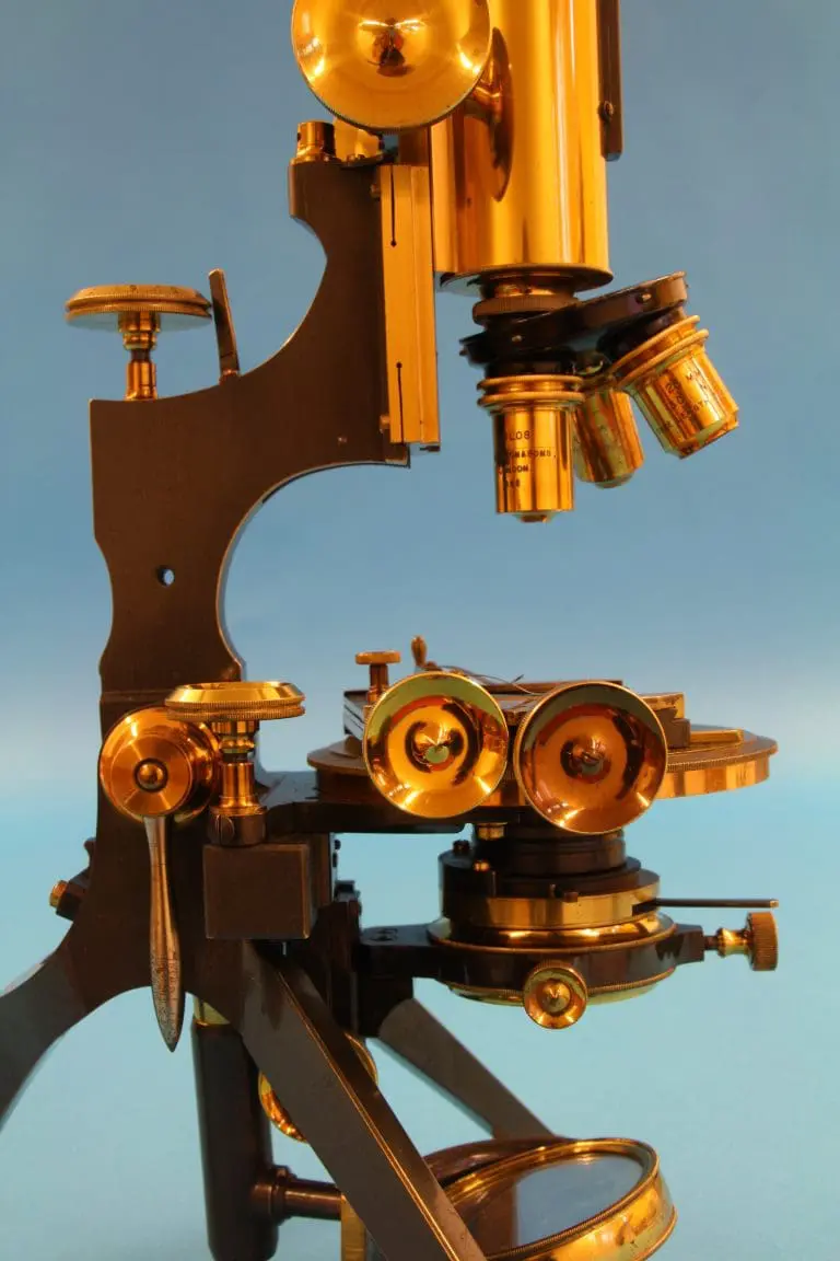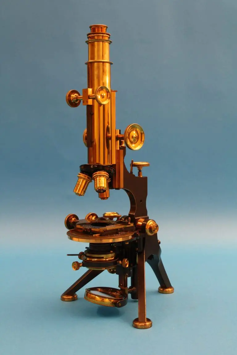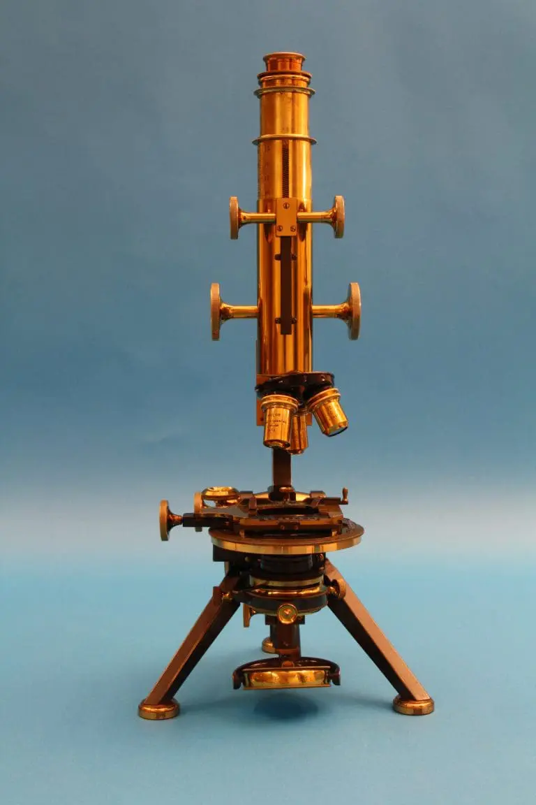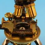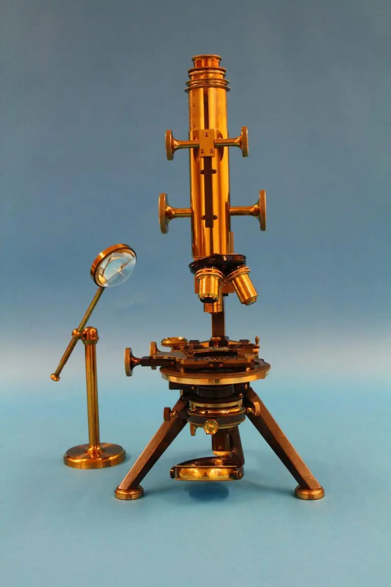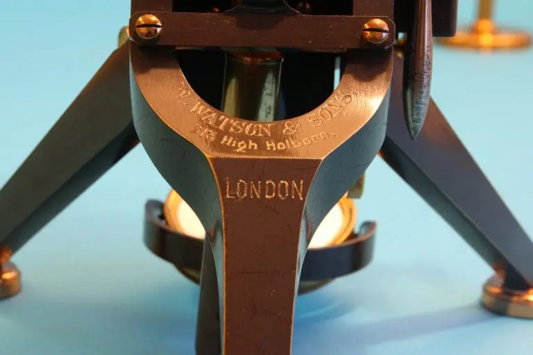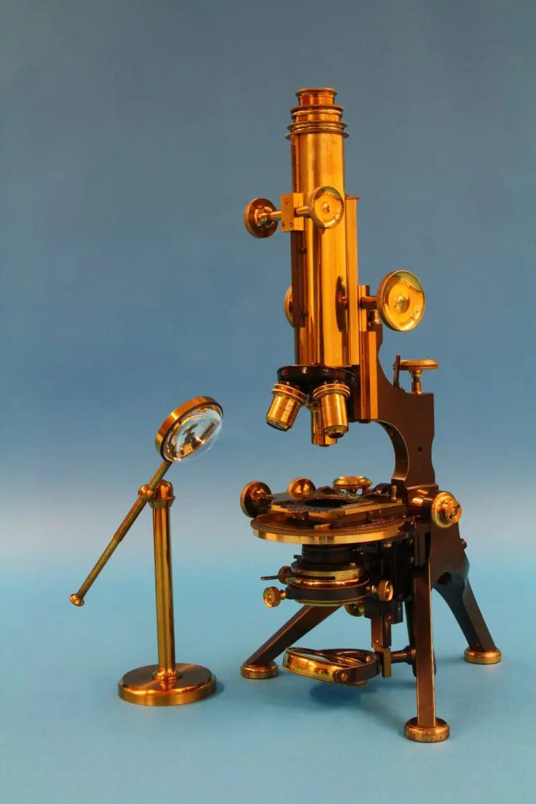 The Antwerp microscopist Henri van Heurck (1838-1909) needed a microscope that was optimised for observation and photography of diatoms, unicellular algae with a skeleton of silica. The English instrument maker Watson started making this type of stand after the directions of Van Heurck around 1890.