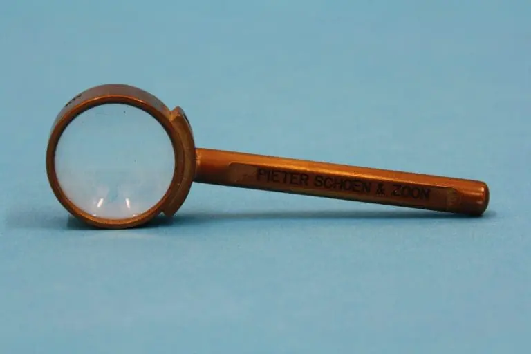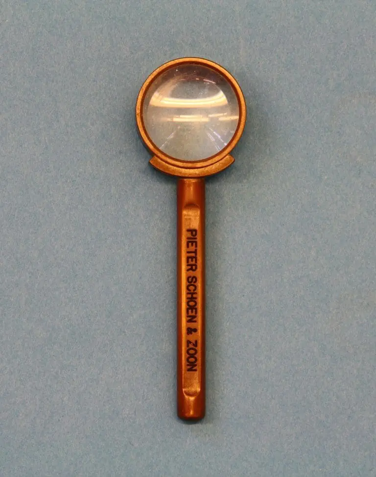 On the handle of the magnifying glass is engraved ‘PIETER SCHOEN & ZOON’, on the frame ‘H.S.’.