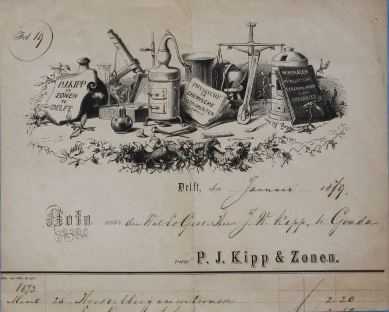 Invoice of P.J. Kipp and Sons, Delft, the Netherlands.