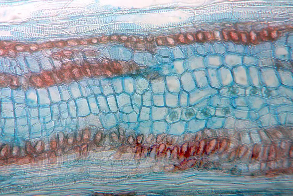 Opnames gemaakt van: wilgentakje (Salix fragilis, coupe lengte, Etzolds kleuring), kraakbeen muisembryo (Casons kleuring), antiek preparaat maag mens.