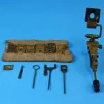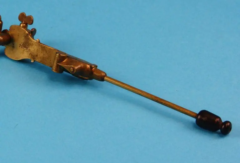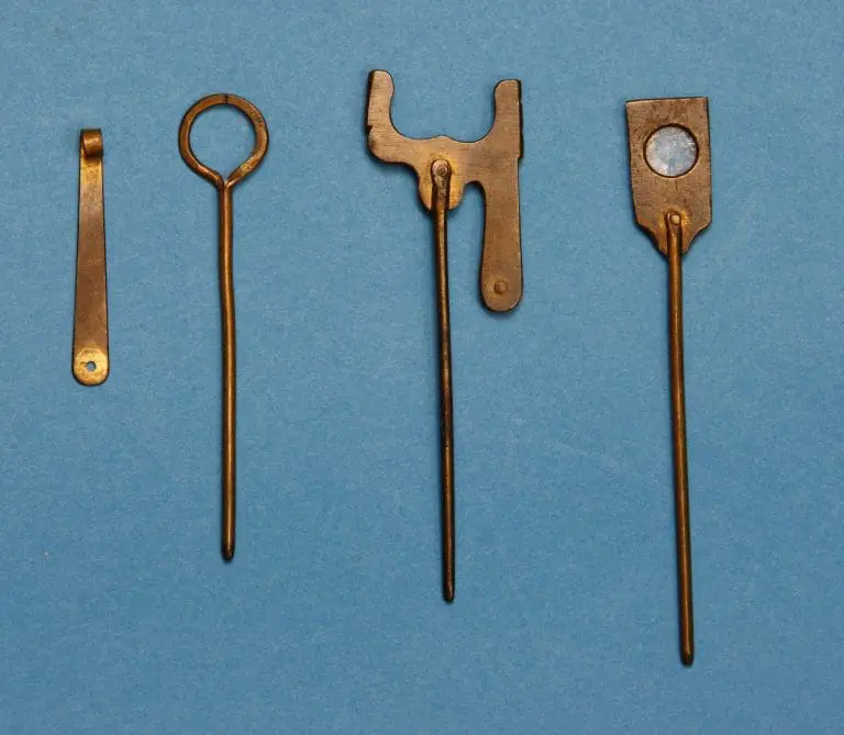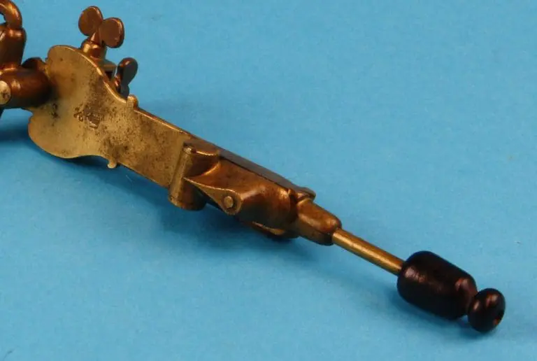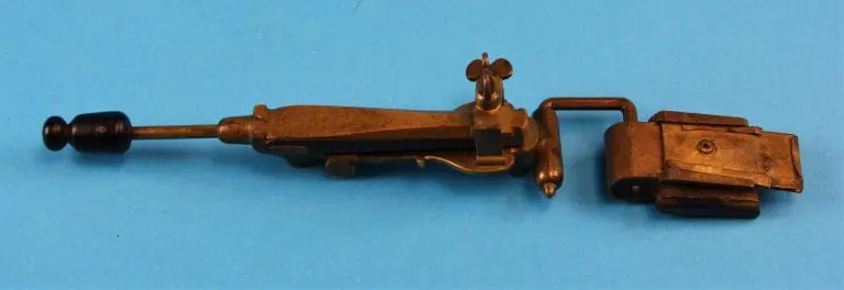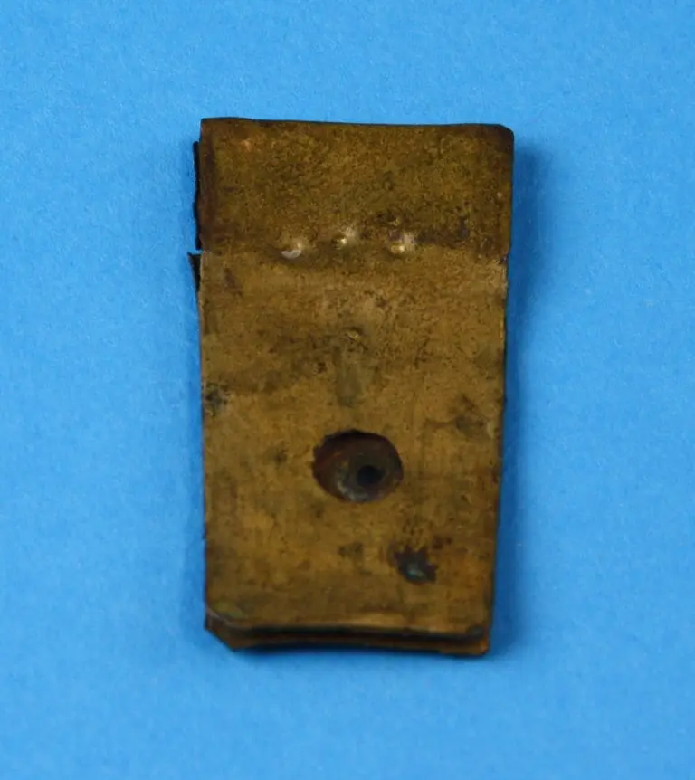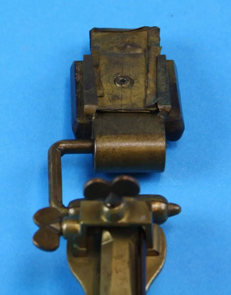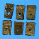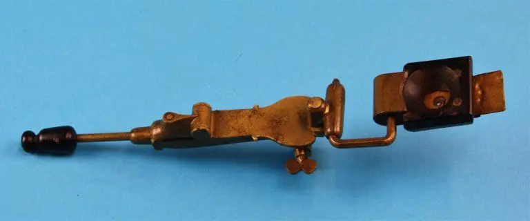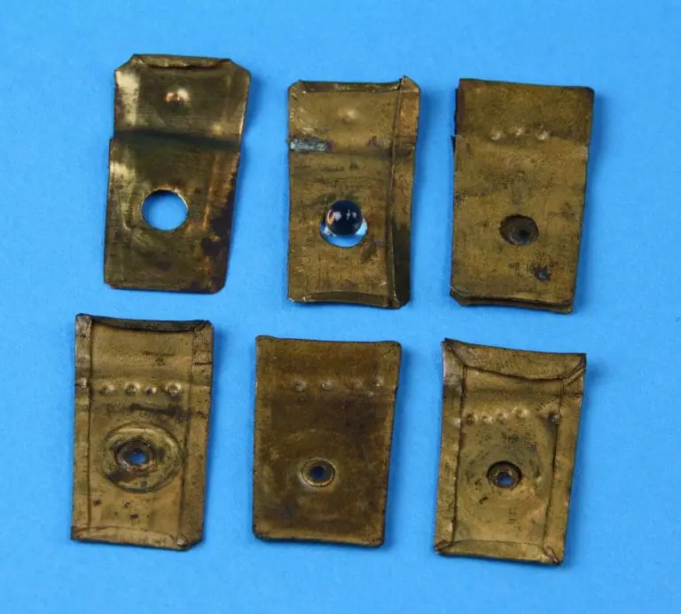 Bij het microscoop bevindt zich een zeemleren etuitje voor zes lenzen. De lensjes zijn tussen twee messing blikjes gemonteerd in een licht uitgehamerde holte.