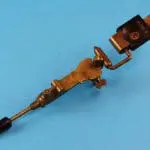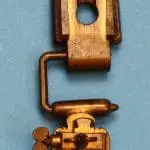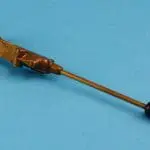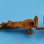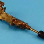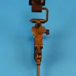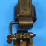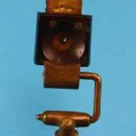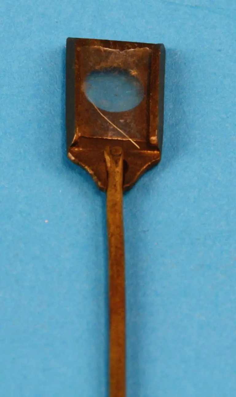 Er is nog een los lensje aanwezig, het is duidelijk een gesmolten glazen bolletje, met een restant van het steeltje. De diameter van het bolletje bedraagt 4.62 mm, de gemeten brandpuntsafstand is 3.36 mm, hieruit volgt een brekingsindex van het glas van 1.52, gewoon kroonglas.
