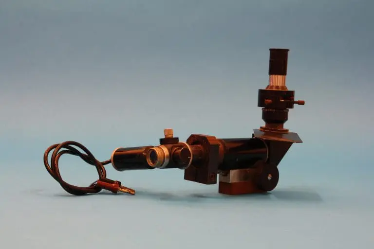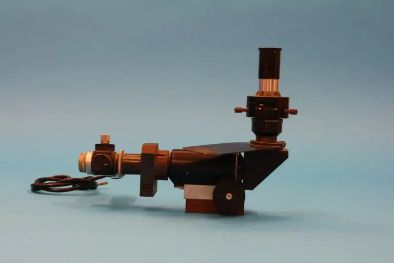 Dit instrument lijkt sterk op een inspectie-microscoop, ook gezien de matige vergroting (20×?), als zodanig waarschijnlijk afkomstig uit een onderzoeks- of industrie-omgeving. Het is vergelijkbaar met onderstaand voorbeeld van een Carl Zeiss-meetmicroscoop.