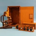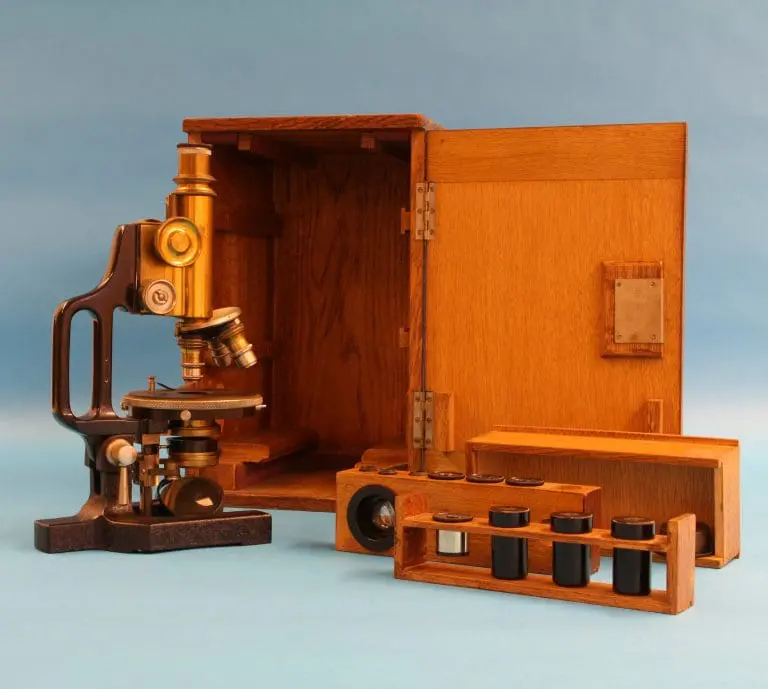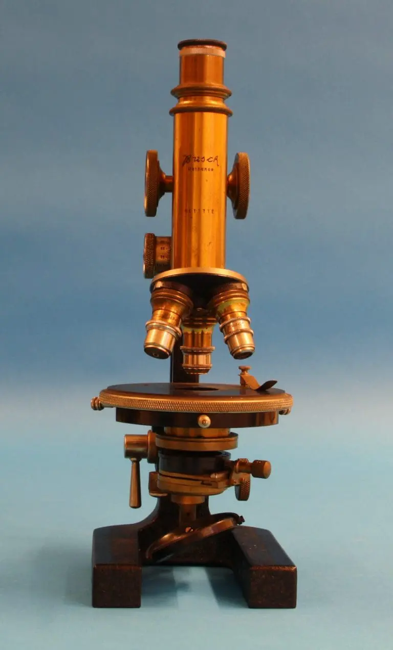In de kist het boekje ‘Anleitung zum Gebrauch des Mikroskopes‘ van Emil Busch, A.-G., Optische Industrie, Rathenow.