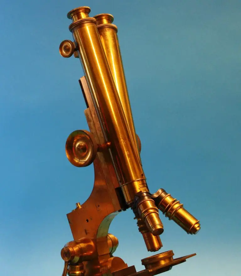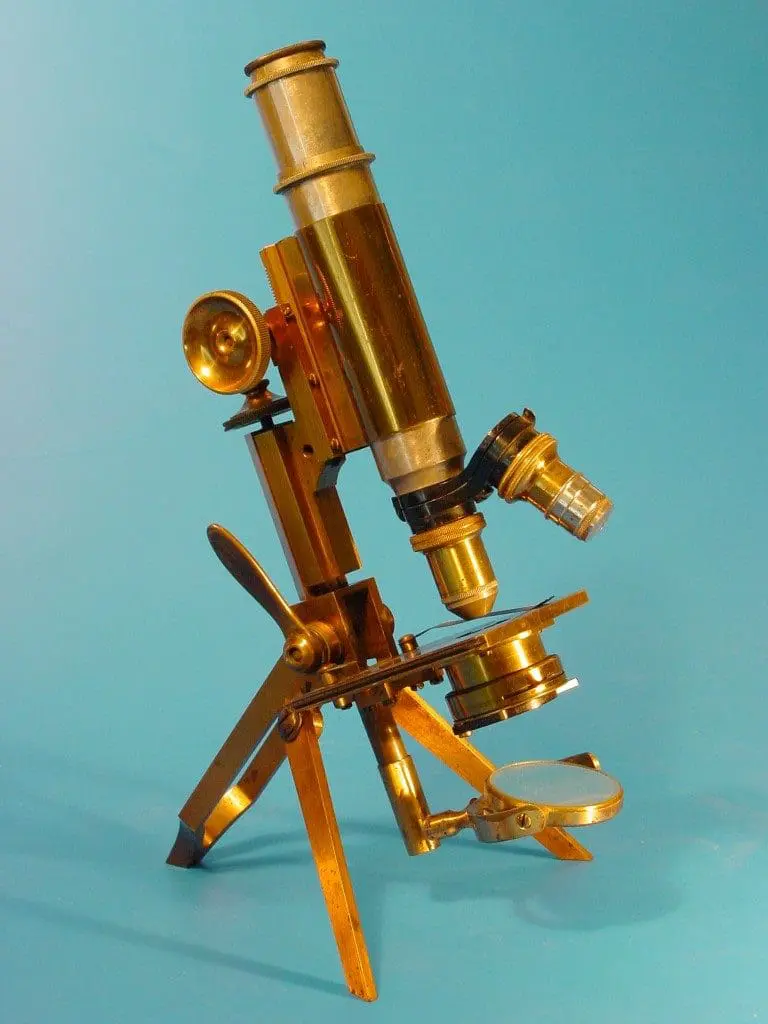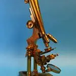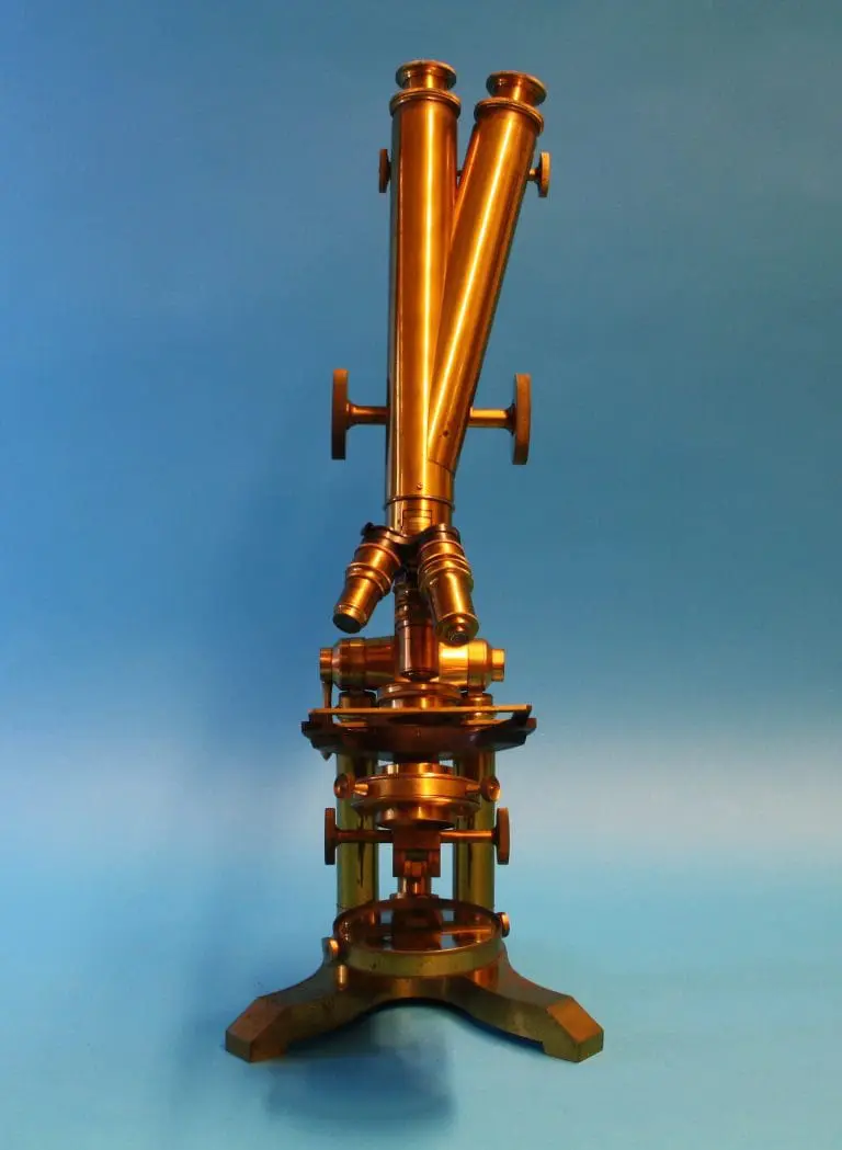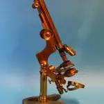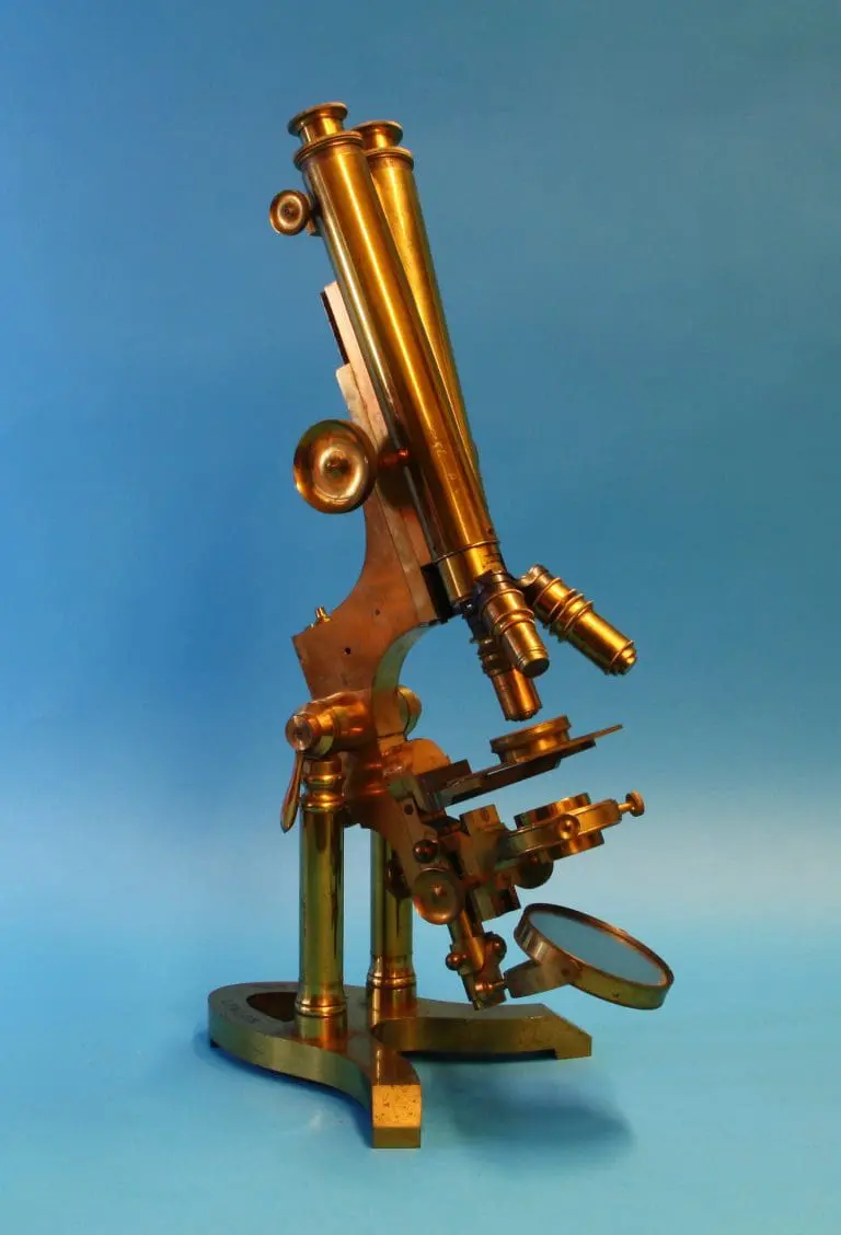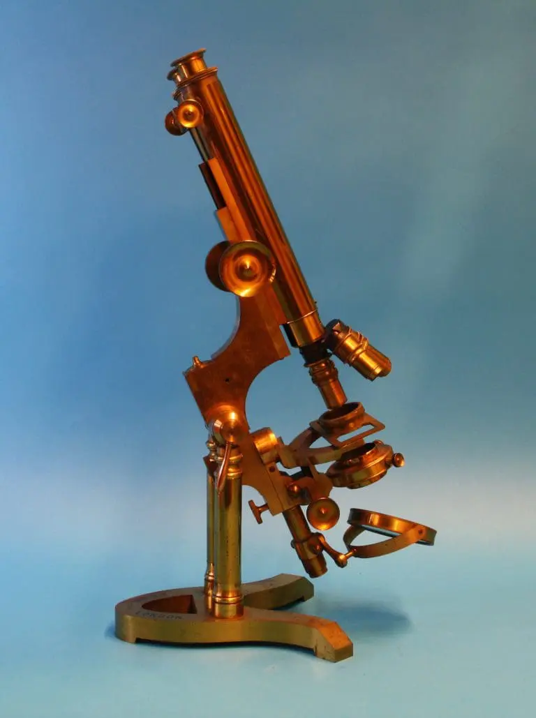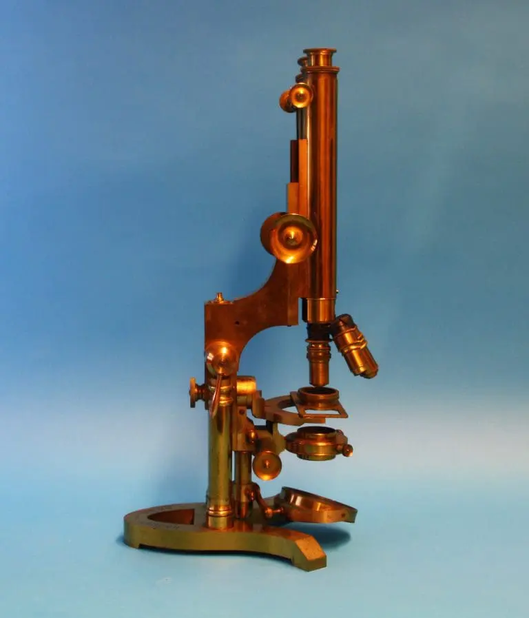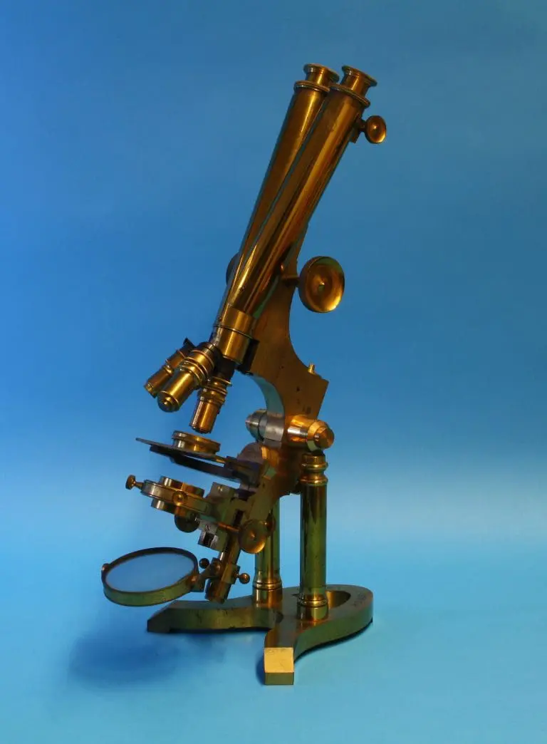 Dit microscoop is afkomstig uit de collectie van prof. dr. J.S. Ploem.