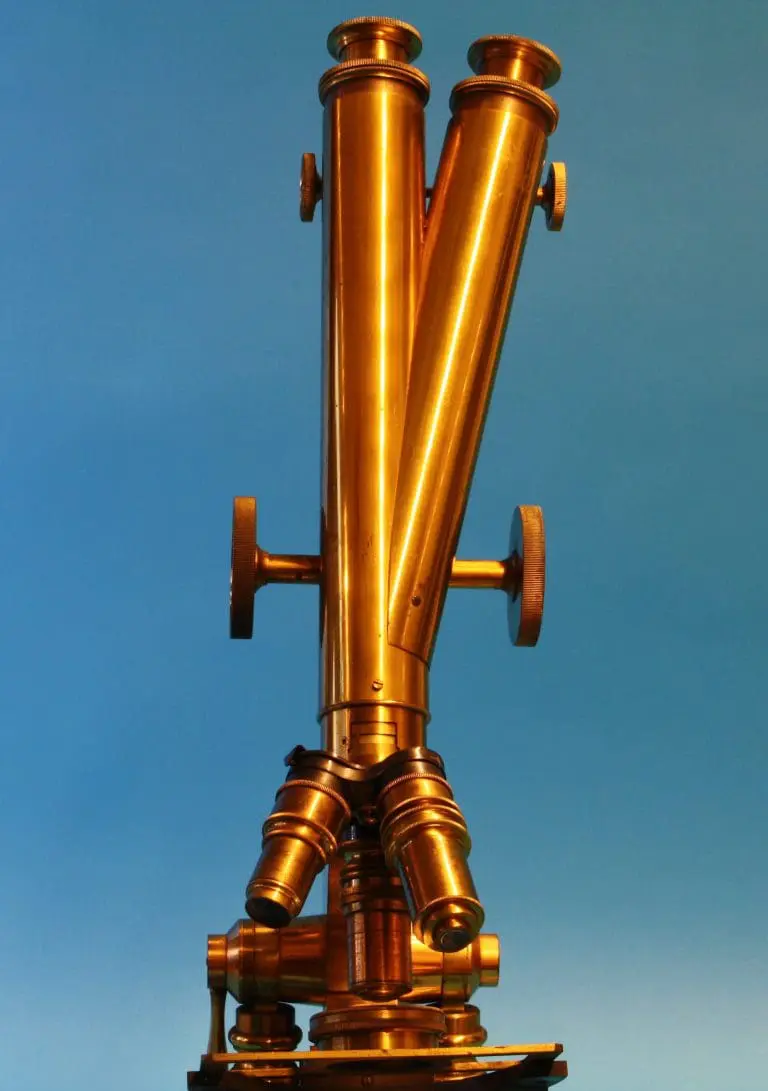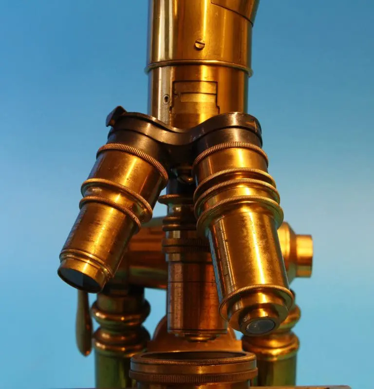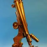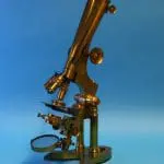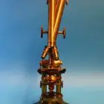 Dit is een (helaas incompleet) exemplaar van het Ross-Zentmayer statief. Zie G.L’E Turner, The Great Age of the Microscope, p.162, het daar beschreven microscoop heeft serienummer 5139. Zowel Andrew als Thomas Ross waren in de tijd dat dit microscoop werd vervaardigd al overleden, de leiding van het bedrijf berustte bij Francis Wenham.