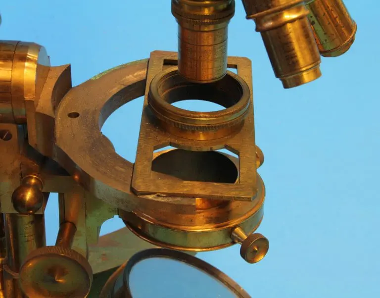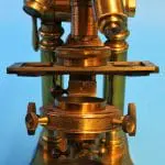 Oorspronkelijk hoort er een ronde, draaibare tafel bij dit microscoop, de constructie van de tafel stamt van Wenham, helaas is ook de tafel niet meer aanwezig.