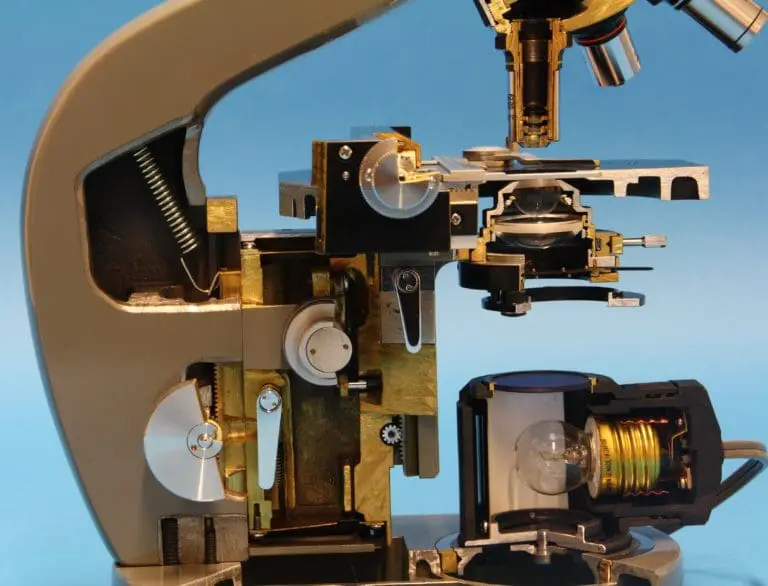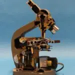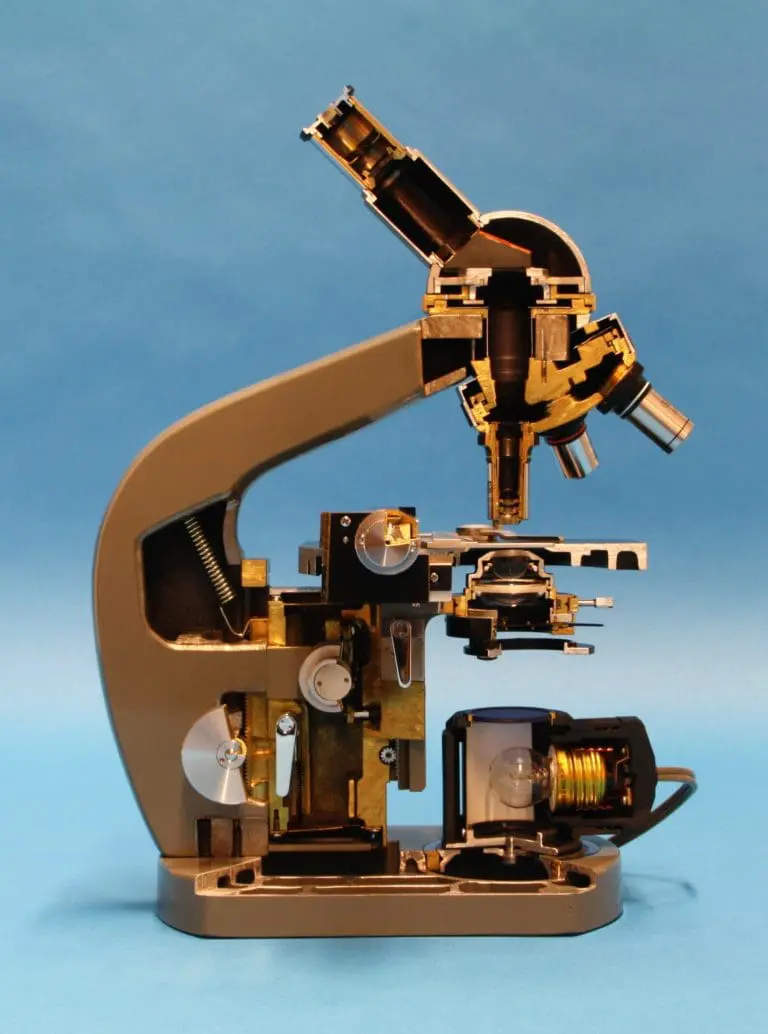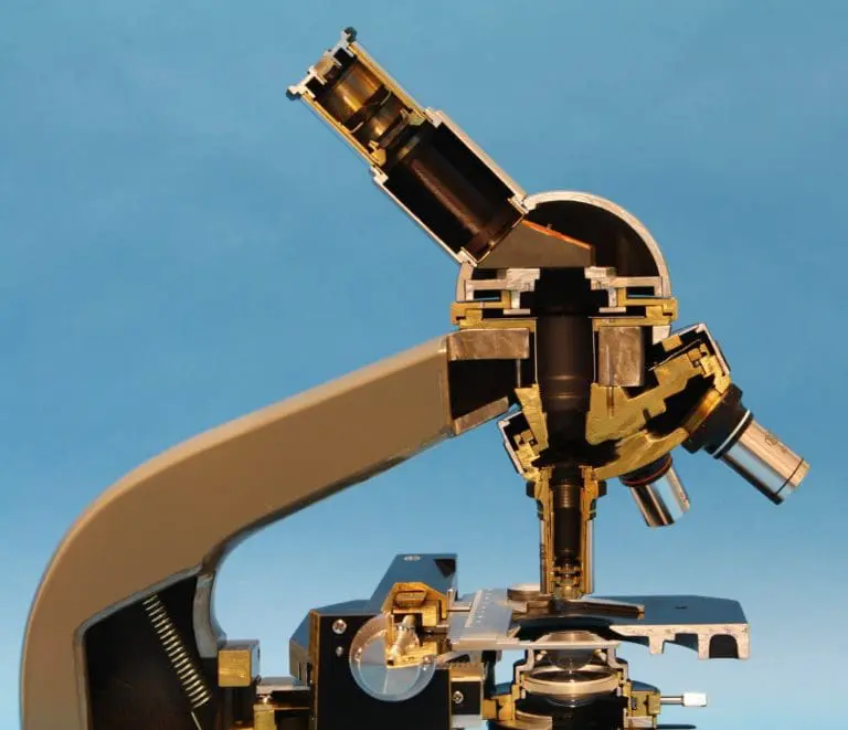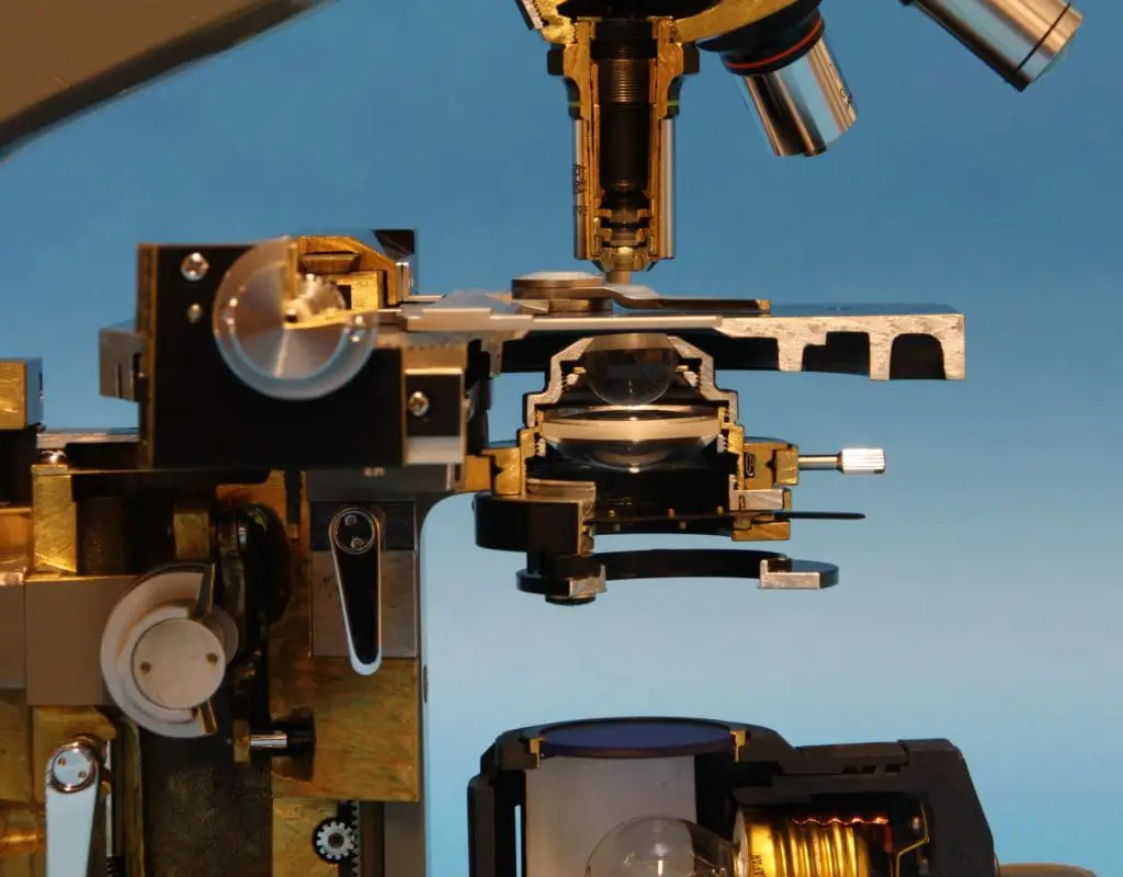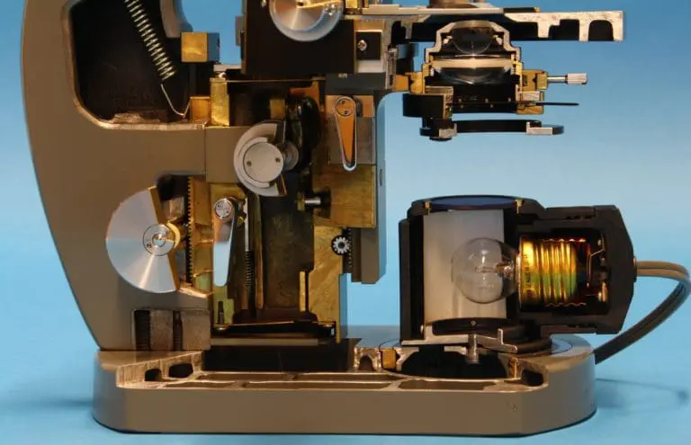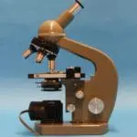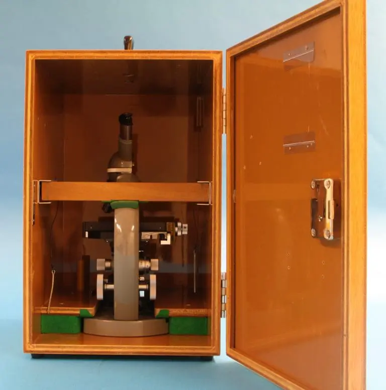 Dit is een gedeeltelijk opengewerkt exemplaar van het in 1957 geïntroduceerde EC microscoop.