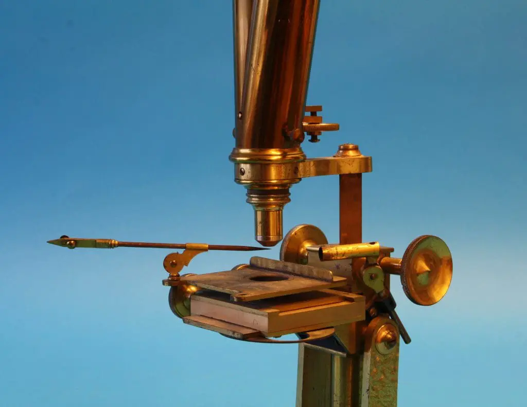 Dit microscoop is afkomstig uit de collectie van prof. dr. J.S. Ploem.