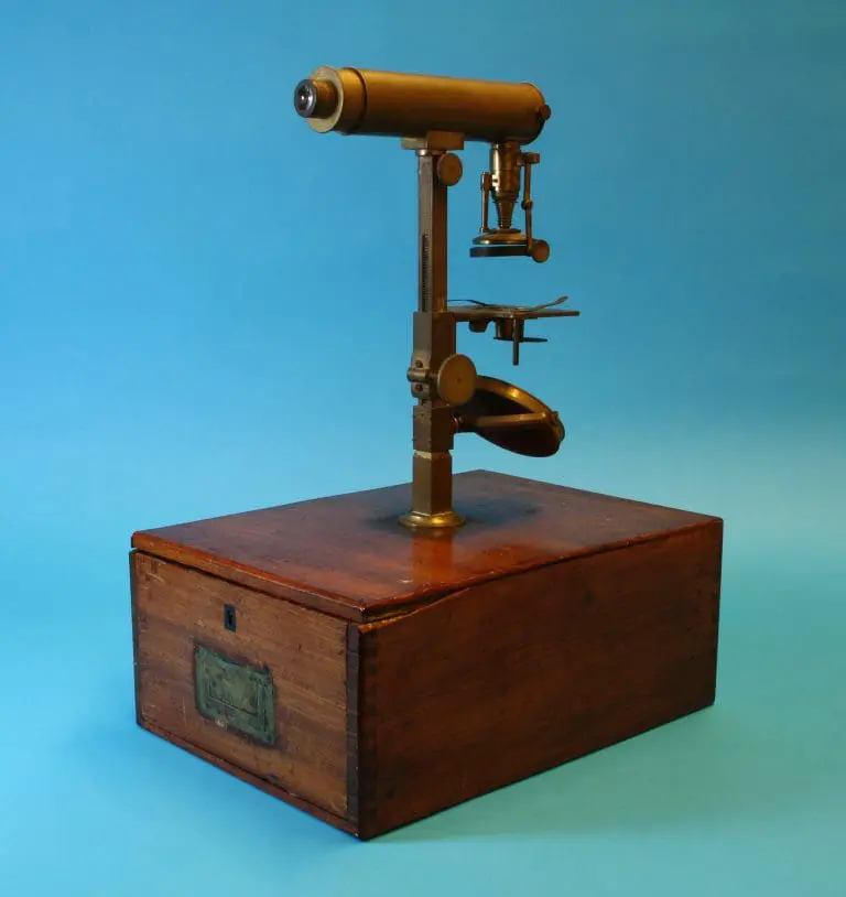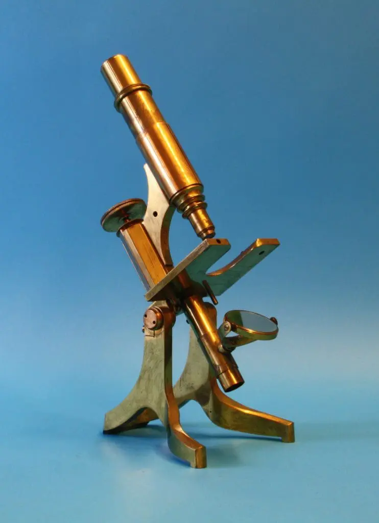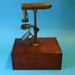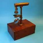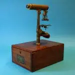 Dit microscoop is afkomstig uit de collectie van prof. dr. J.S. Ploem.
