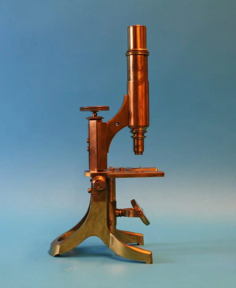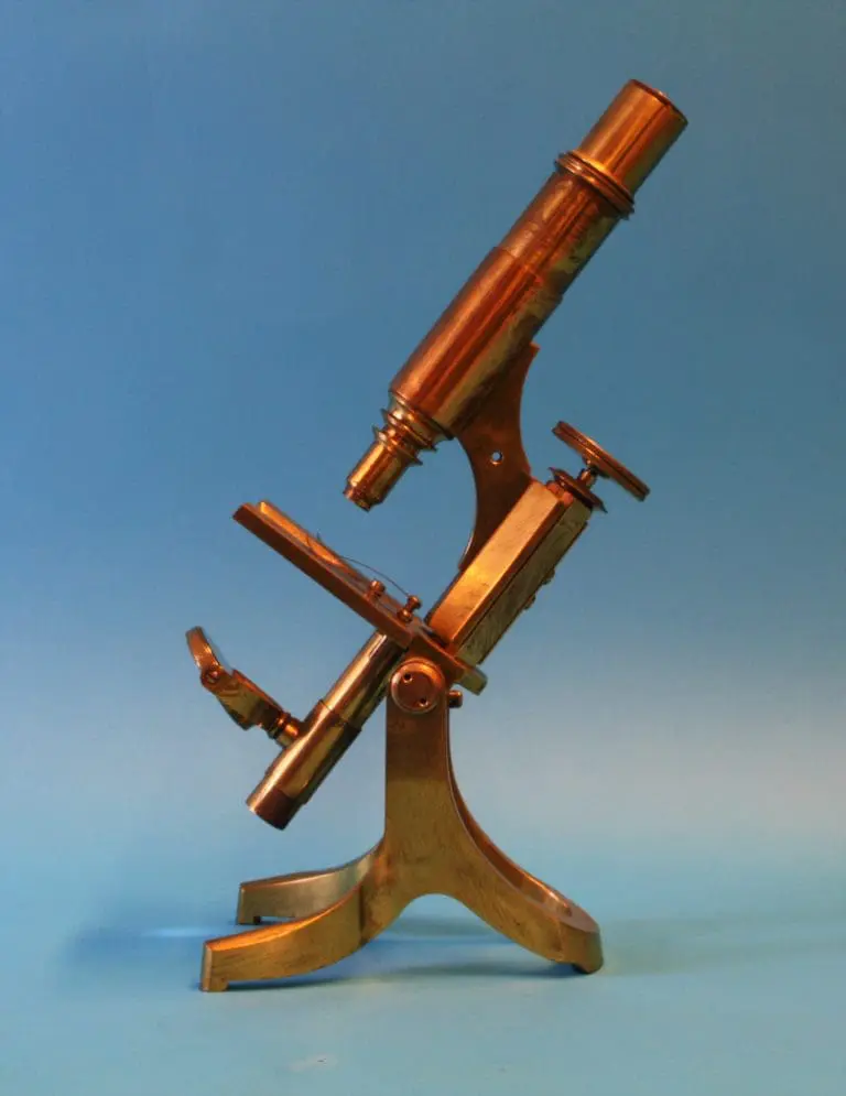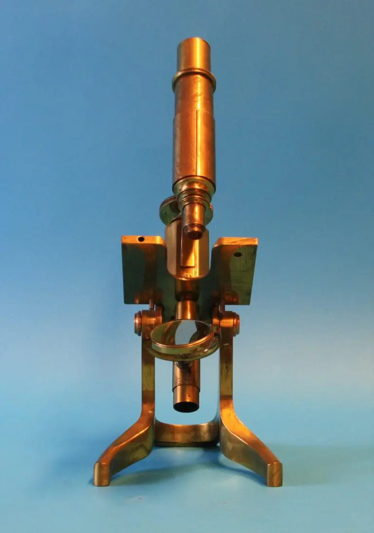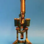 Dit microscoop is afkomstig uit de collectie van prof. dr. J.S. Ploem.