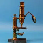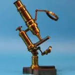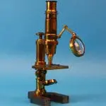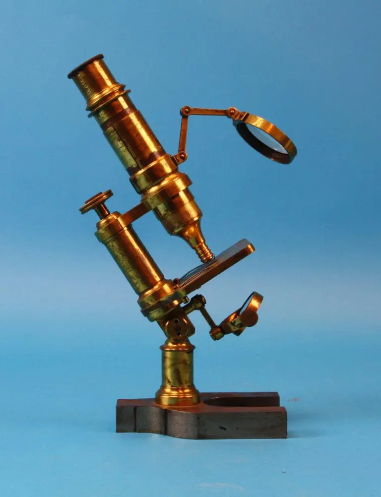 Dit microscoop is afkomstig uit de collectie van prof. dr. J.S. Ploem.