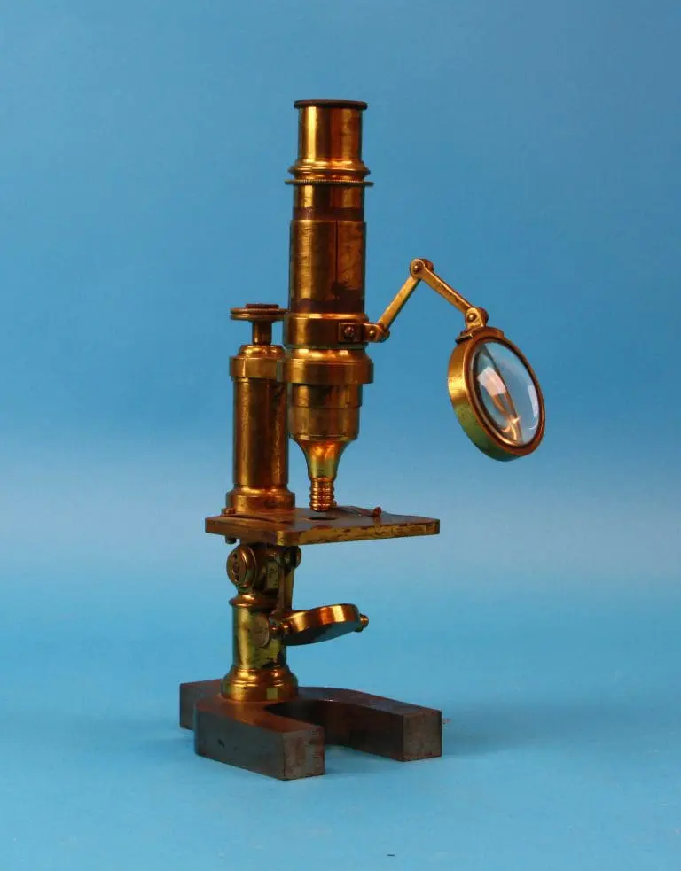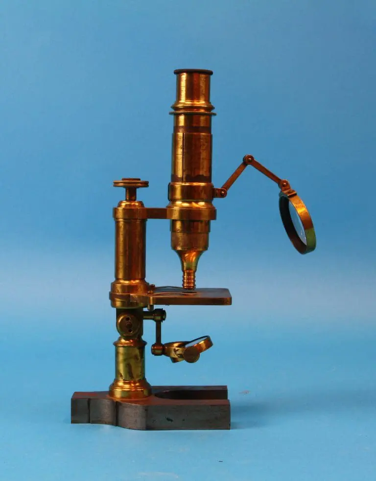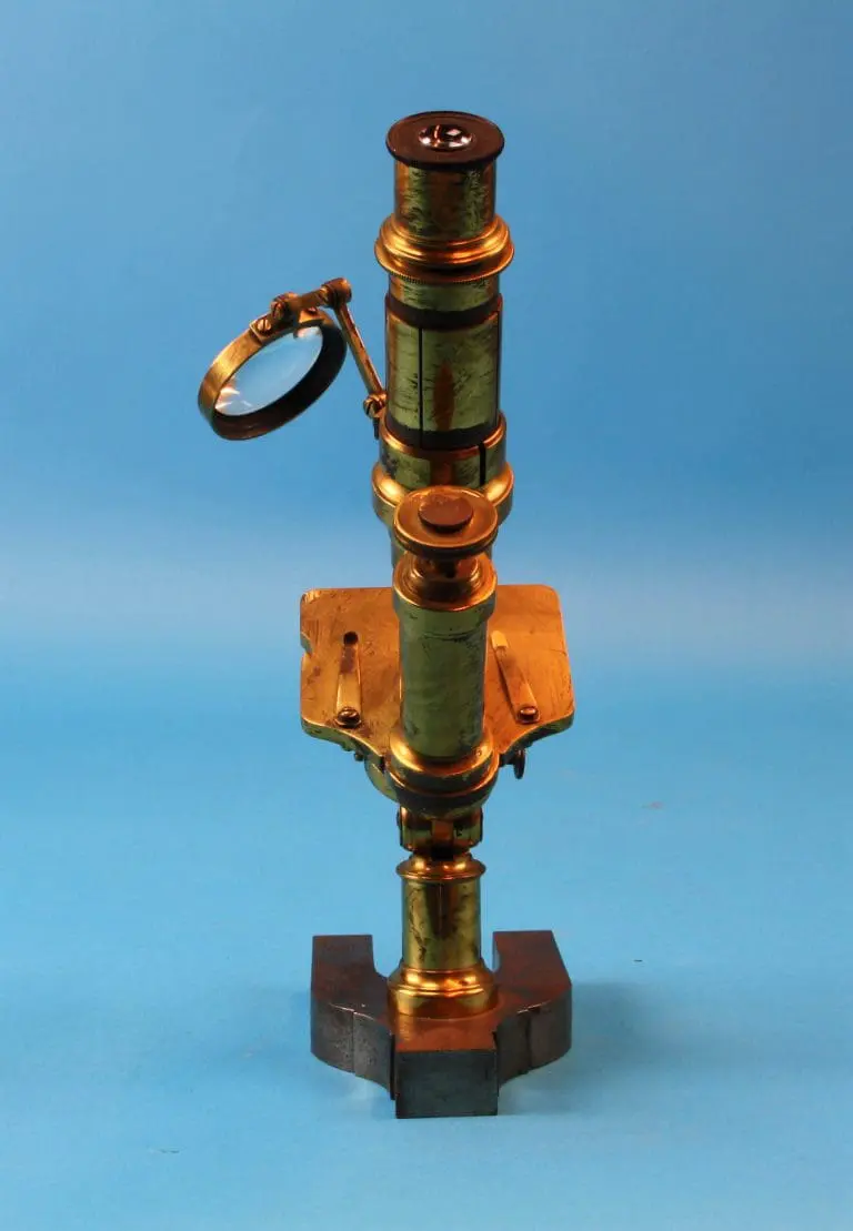Bij het microscoop zijn een oculair en een objectief aanwezig. Het objectief bestaat uit een tuitvormige huls met daaraan drie stelsels in kleine ‘knoop’montuurtjes. Vaak konden deze stelsels ook afzonderlijk gebruikt worden. Nadeel van deze bouwwijze is dat de centrering van de stelsels niet optimaal is, wat vooral bij sterkere objectieven hinderlijk is. Bovendien raakt zo’n ‘knoopje’ makkelijk kwijt.