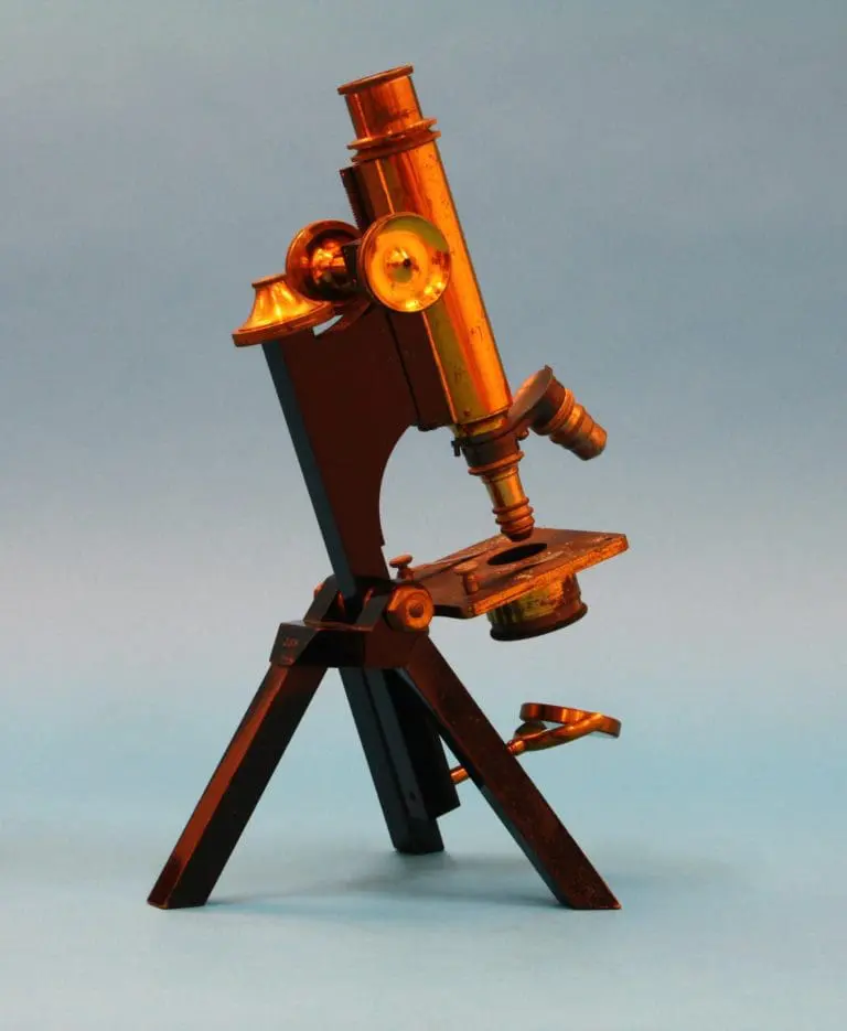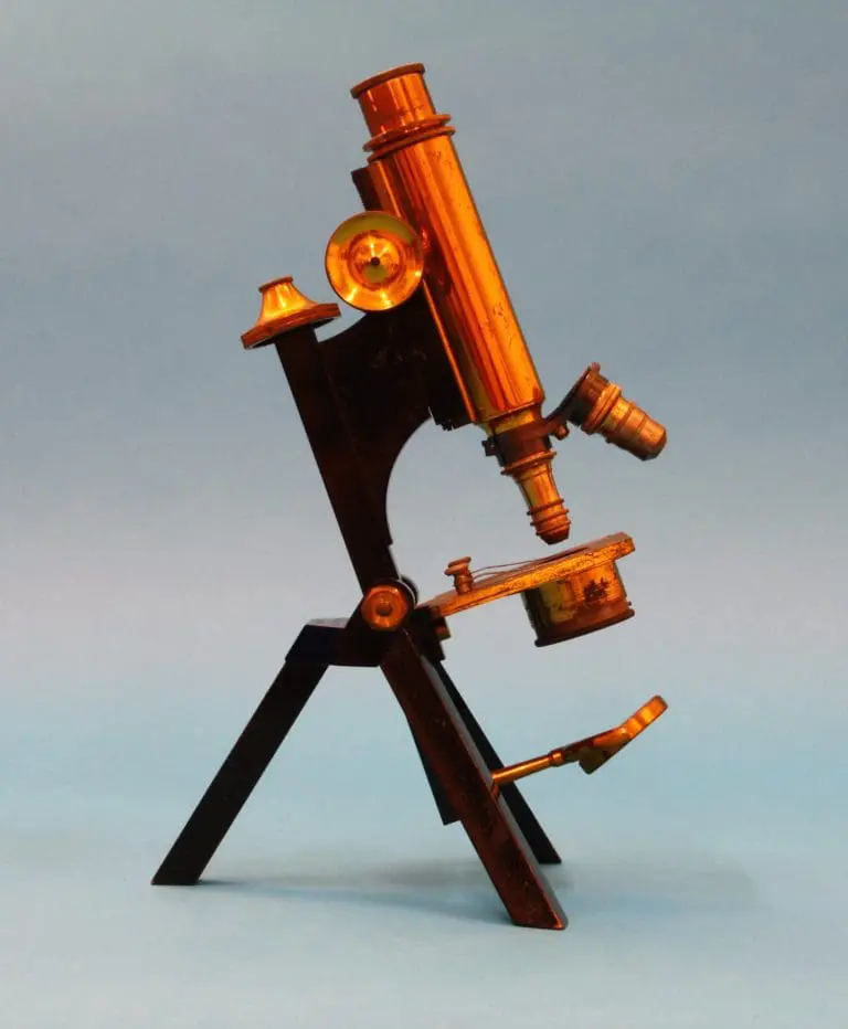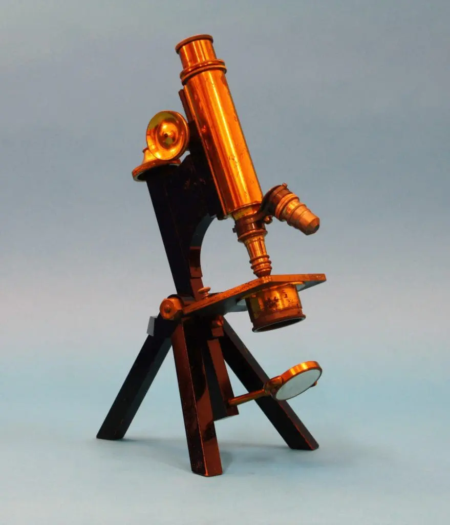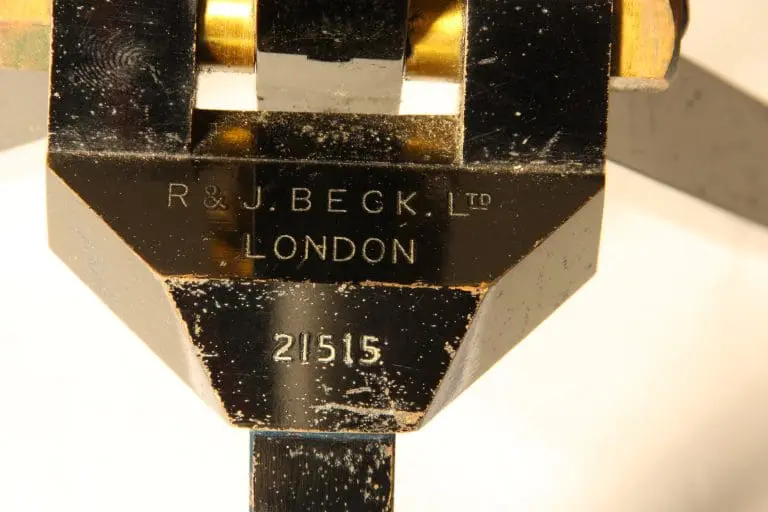 Dit is Beck’s ‘British Students’ microscoop, statief type 55. Met een oculair en objectieven van 2/3 en 1/6 inch werd het in 1900 te koop aangeboden voor 6 pond, 8 shillings en 6 pennies. Het microscoop bestaat uit een solide drievoet zoals die bij meer Engelse microscopen uit de tweede helft van de negentiende eeuw voorkomt (het Powell and Lealand No. 1 statief), met draaibaar over een hoek van 90 graden de rechte statiefarm. Het microscoop heeft een eenvoudige vierkante tafel met veerclips, onder de tafel een irisdiafragma en een vlakke en holle spiegel draaibaar in een beugel. De grofinstelling werkt met tandheugel en rondsel. De fijnbeweging werkt met een micrometerschroef en een hefboom die de tweevoudige objectiefrevolver op en neer beweegt. Bij het microscoop is een verlichtingslens voor opvallend licht aanwezig.
