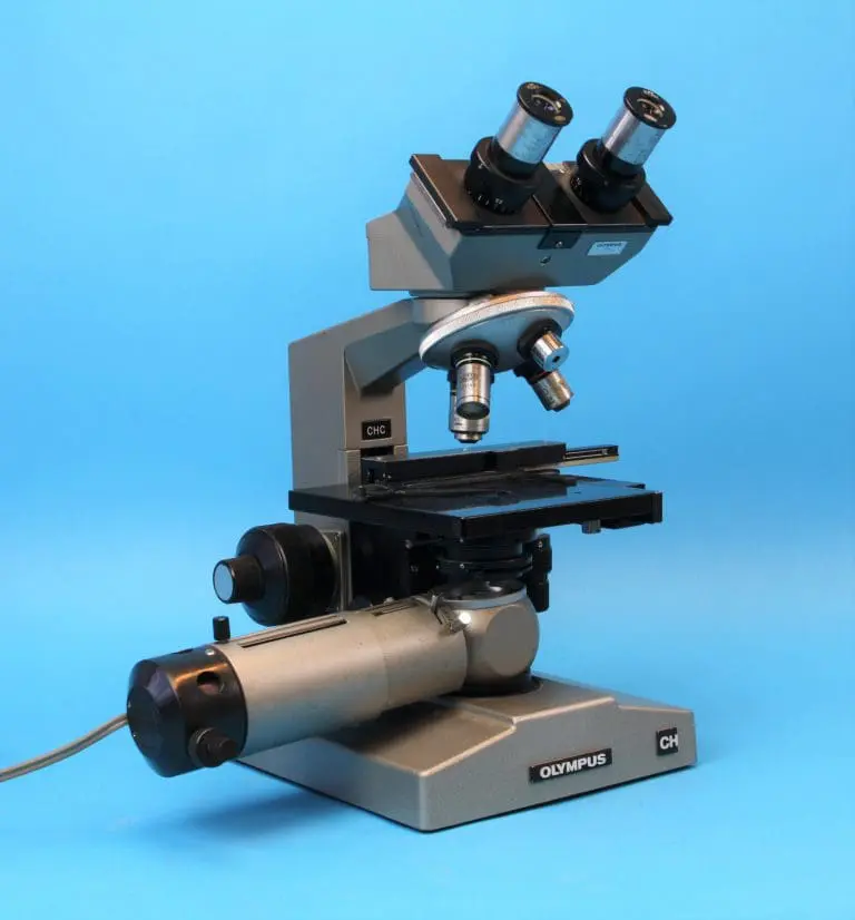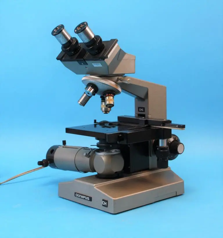 Olympus introduceerde het CH-microscoopsysteem in 1976, dit CHC is het eenvoudigste instrument uit de reeks, zonder ingebouwde verlichting. Onder de tafel past of een spiegel in een beugel of een eenvoudige microscooplamp type LSK.