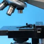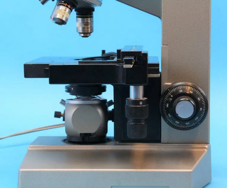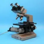 Het statief bestaat uit een rechthoekige voet, bij de duurdere modellen zit hierin de verlichtingseenheid gemonteerd. Een solide L-vormige arm die aan het uiteinde de tubus en de objectiefrevolver draagt vormt hiermee één geheel. Onderin de arm bevindt zich het mechanisme voor de scherpstelling met grof- en fijnbeweging concentrisch in één knop, De tafel kan 30 mm in hoogte versteld worden. Het microscoop heeft een grote vaste rechthoekige tafel met een preparaatgeleiding waarvan de bedieningsknoppen voor de voor-/achterwaartse en de links-/rechtsbeweging concentrisch aan de linkerzijde van de tafel zijn aangebracht.