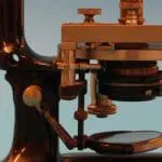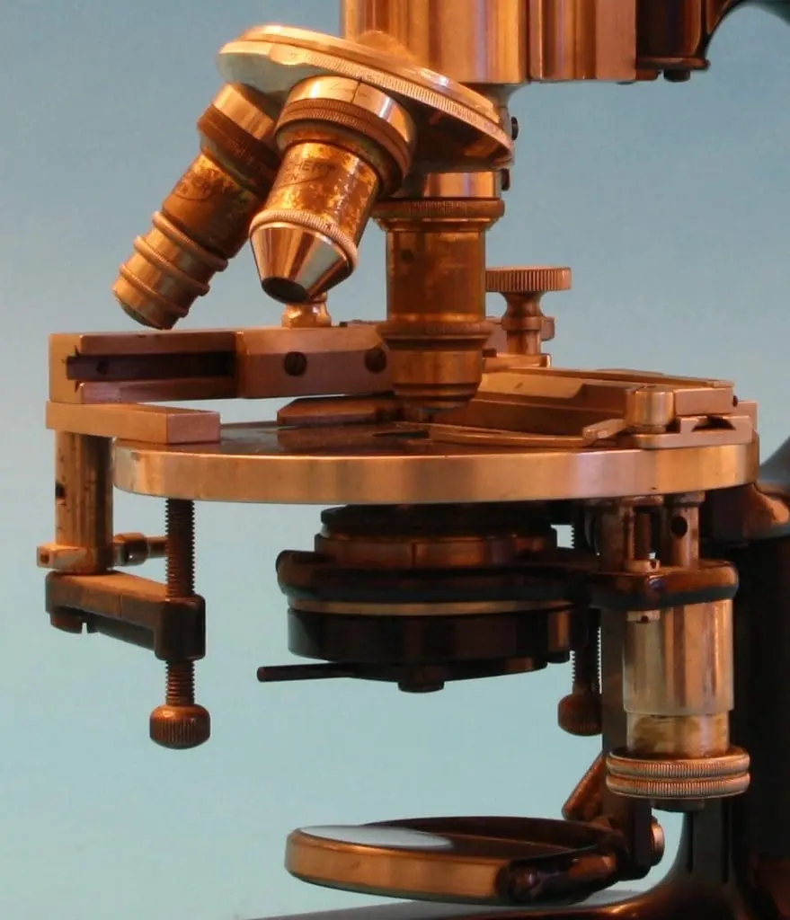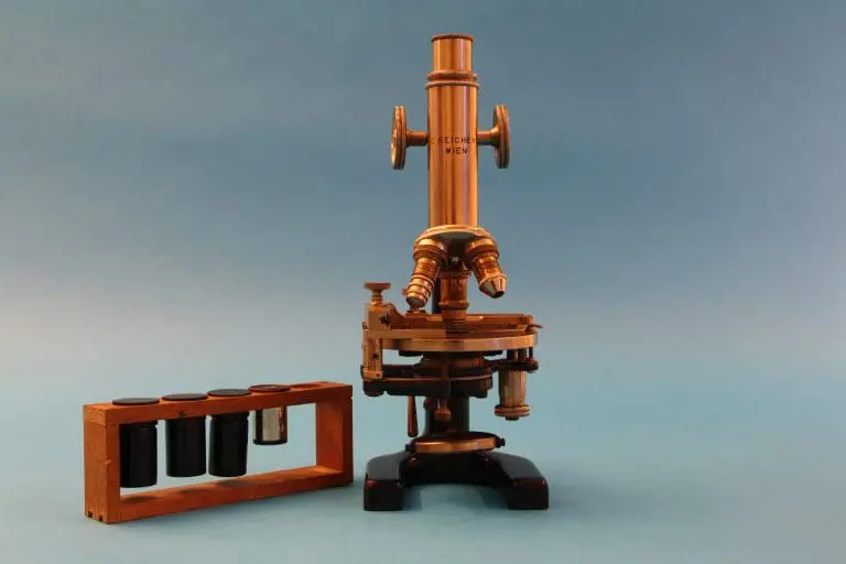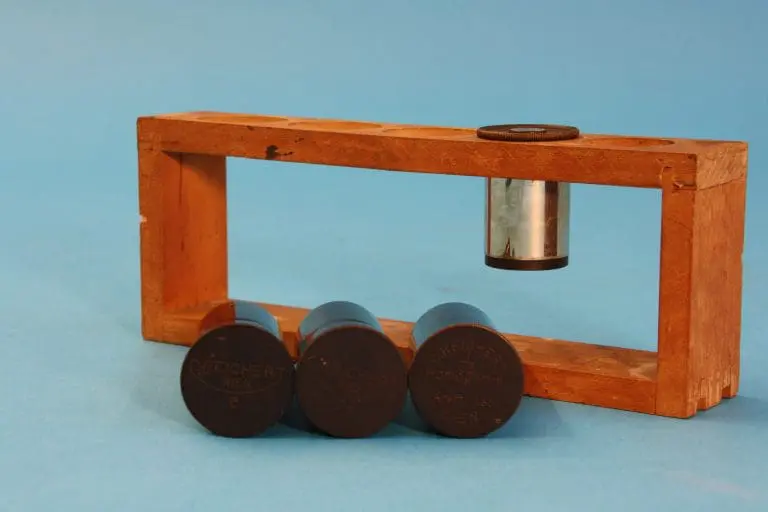 Samengesteld niet-achromatisch stammicroscoop op kistje