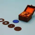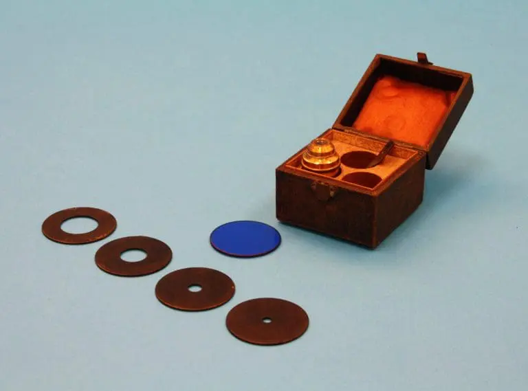 Objectieven: gemerkt ‘3’ en ‘7’. In het doosje is nog plaats voor een derde objectief, dat ontbreekt.