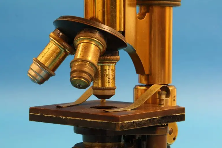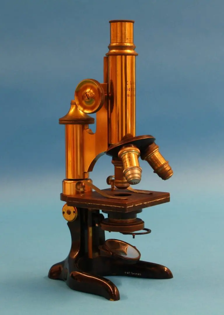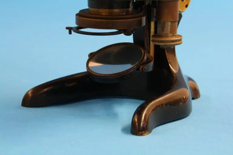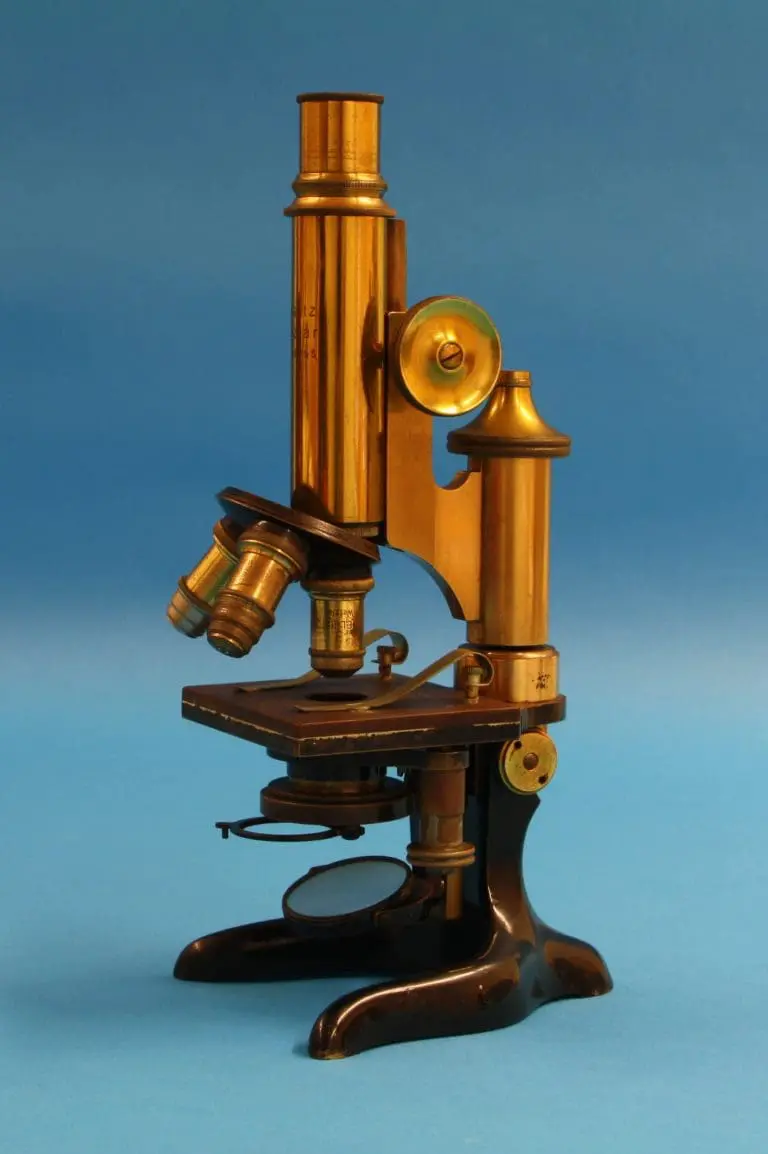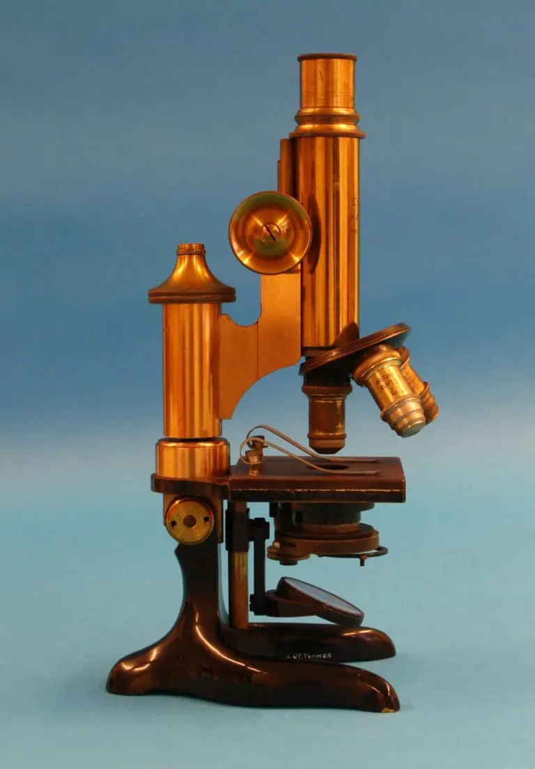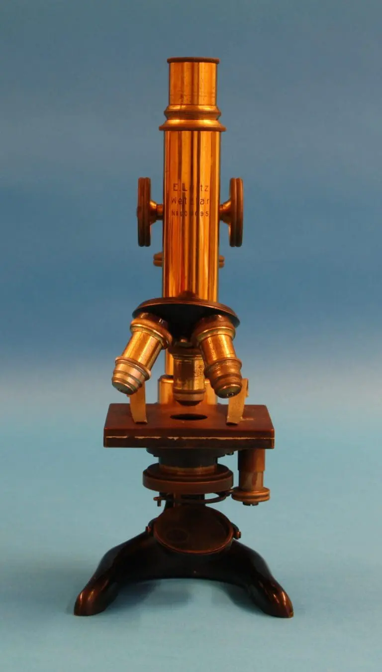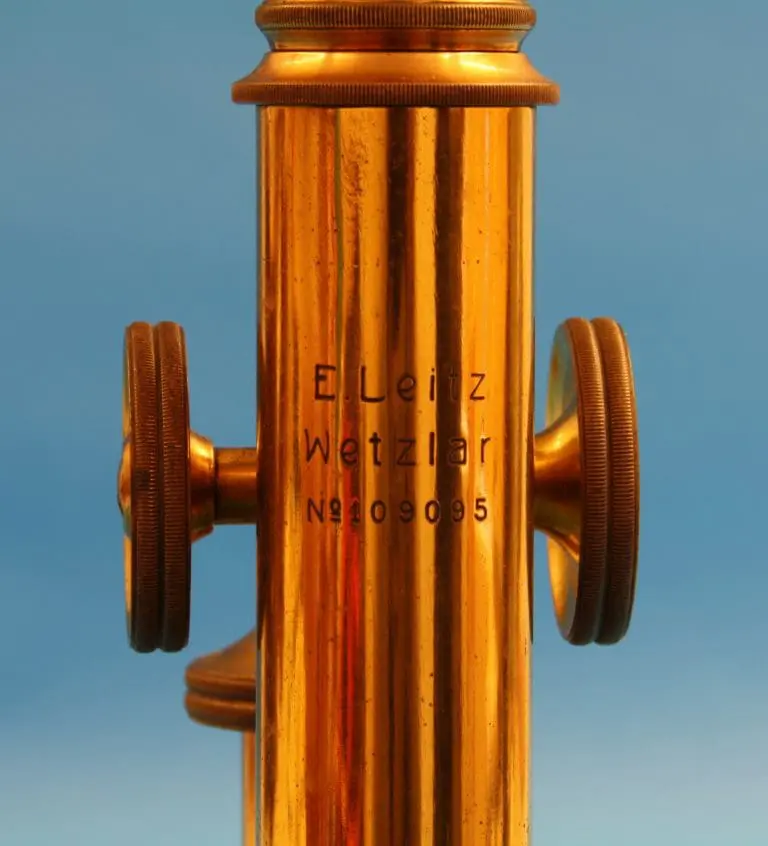 De tubus heeft een drievoudige objectiefrevolver. Er zijn drie objectieven, een ‘3’, een ‘6’, en een ‘7’, gesigneerd ‘E. Leitz / Wetzlar’. Vermoedelijk hoort het objectief ‘6’ niet oorspronkelijk bij dit microscoop, de signering heeft een ander lettertype, ook is het front gewoon gelakt en niet vernikkeld.