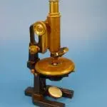 Statief type III C, met de bijnaam ‘Bierseidel’ (bierpul) vanwege de handgreep. Dit statief werd in 1898 door Zeiss geïntroduceerd, het werd gemaakt tot in het begin van de jaren twintig. De oudere grote statieven I en III werden bij de statiefzuil opgepakt, ze wegen zo’n kilo of 7, en dit leidde vaak tot beschadiging van het gevoelige fijninstelmechanisme dat in de statiefzuil zit. In dit nieuwe statief gebeurt dit niet langer, de fijnbeweging met een micrometerschroef volgens Berger werkt nu direct op het blok dat enkel de tubus draagt. Grofinstelling middels tandheugel en rondsel. Met uitschuifbare tubus.