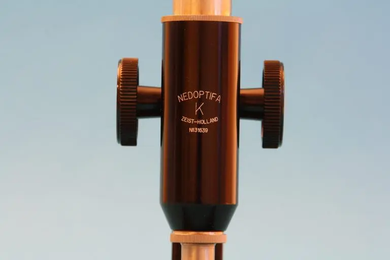 Dit microscoop type ‘K’ is gemaakt door de firma van dr. C.E. Bleeker in Zeist. Instrumenten van Bleeker werden ook verkocht onder de naam ‘Nedoptifa’, dat staat voor ‘Nederlandse Optische Fabriek’.