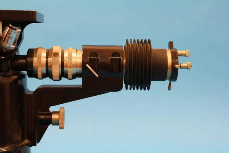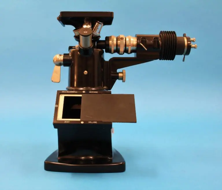Het microscoop heeft een ingebouwde camera voor fotografische platen van 6.5 × 9 cm.
