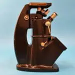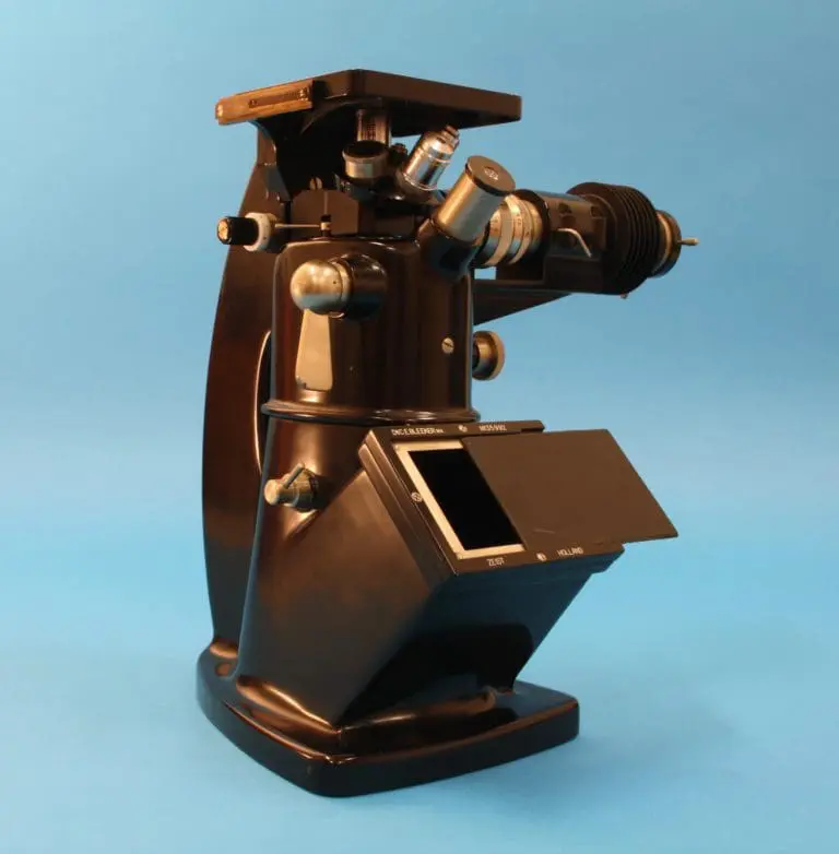 Het statief ‘M’ is een metaalmicroscoop, het voorwerp ligt op de tafel en de optiek bevindt zich onder de tafel. Een dergelijk ‘omgekeerd’ microscoop is uitsluitend ingericht voor opvallend licht. De objectieven zijn optisch gecorrigeerd voor gebruik zonder dekglas.