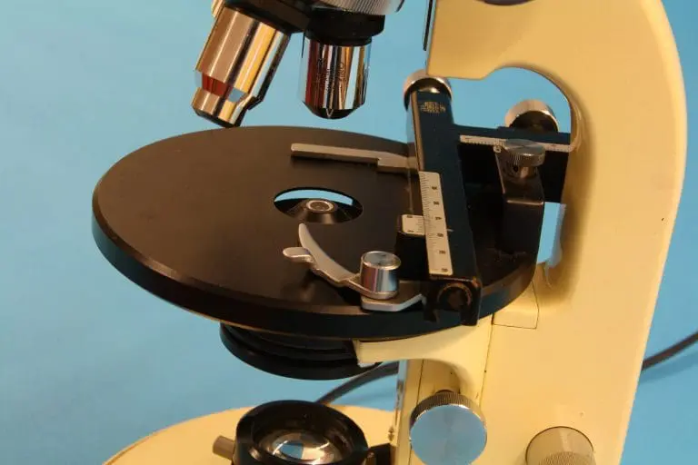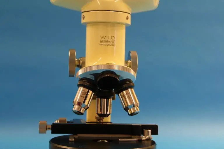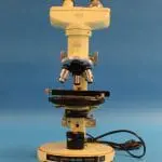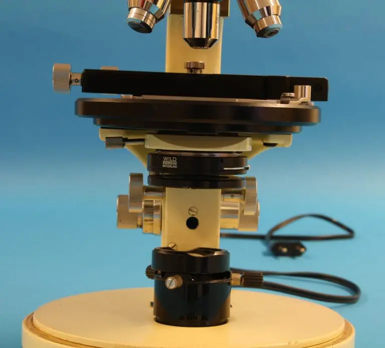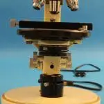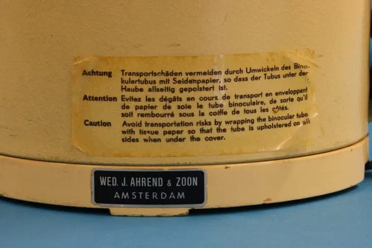 Op de ronde voet de licht gebogen statiefarm, onderin de statiefarm de fijninstelling die op de tafel werkt. Onder de tafel een middels tandheugel en rondsel in hoogte verstelbare condensor. Bovenin de arm de grofinstelling ook middels tandheugel en rondsel, hiermee is de korte tubus in hoogte verstelbaar. Vast aan de tubus verbonden de viervoudige objectiefrevolver. Bovenaan de tubus kunnen zowel monoculaire als binoculaire opzetstukken gemonteerd worden.