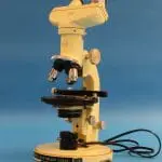 De M11 is een handzaam microscoop, met zijn ronde voet van 17.5 cm diameter en de bijbehorende bus, is hij zo overal mee naartoe te nemen. In tegenstelling tot de destijds gangbare kleur zwart is deze microscoop crèmekleurig gemoffeld. Dit exemplaar heeft een preparaatgeleiding, een in de voet gebouwde lamp, een viervoudige objectiefrevolver en een binoculairtubus. Er was ook een fasecontrastcondensor met bijbehorende optiek te koop.