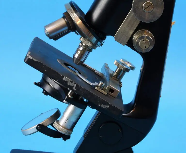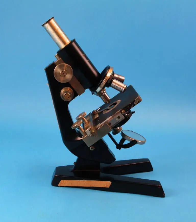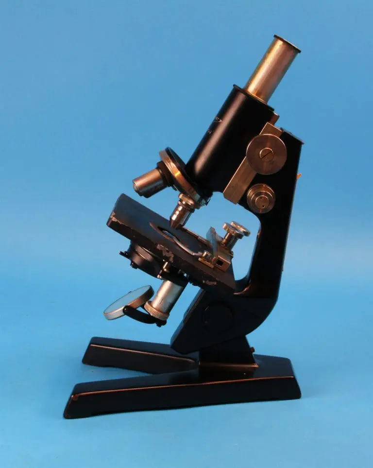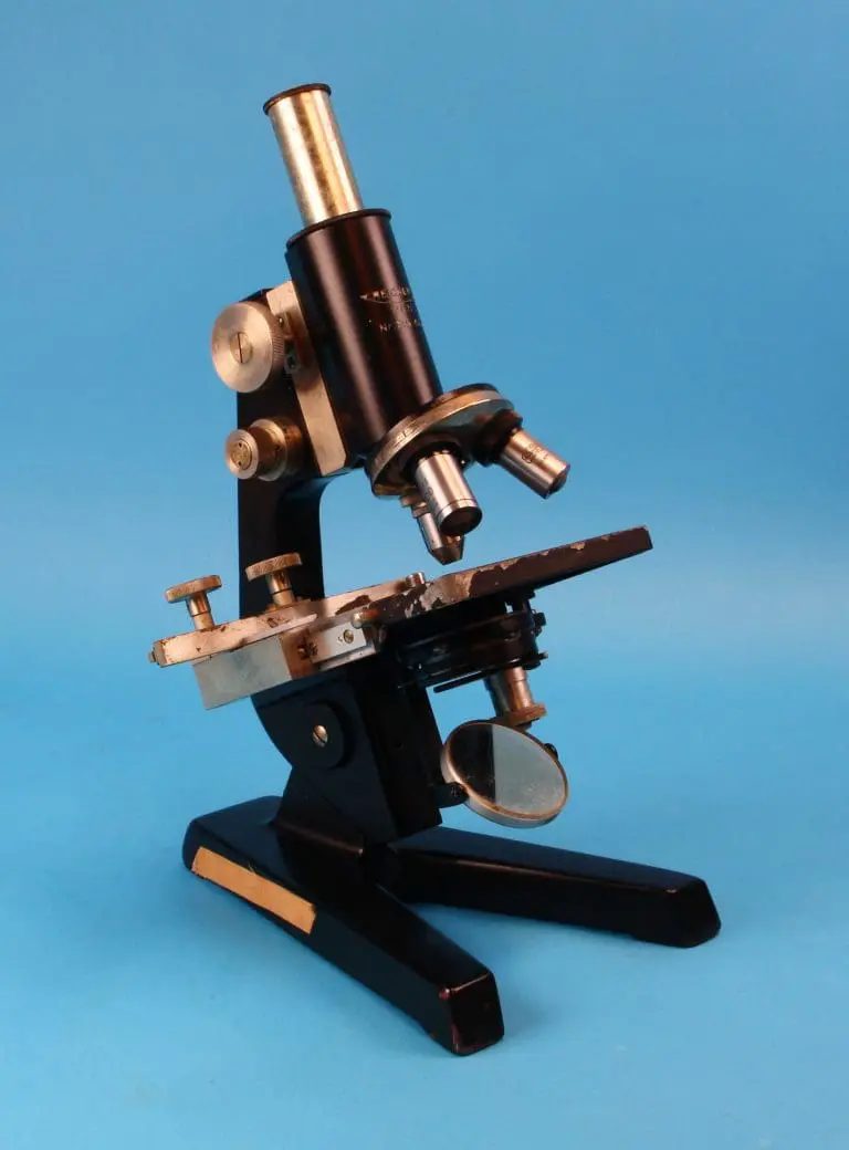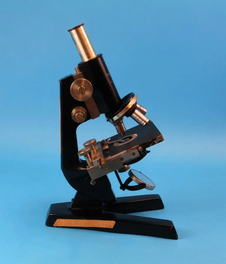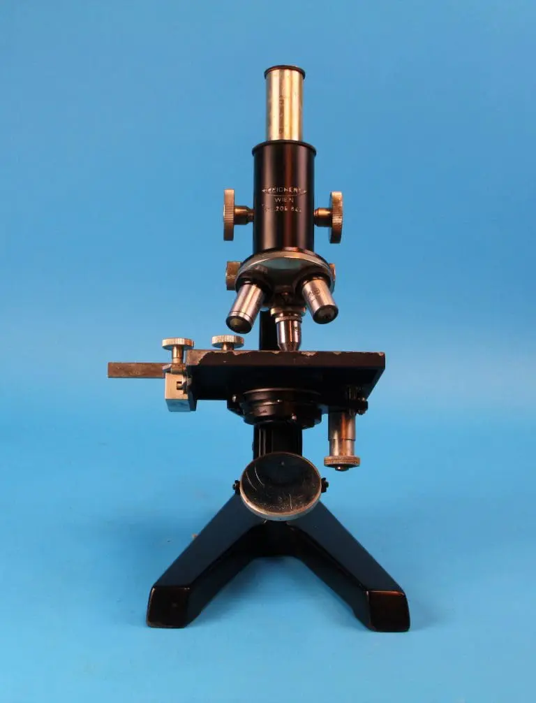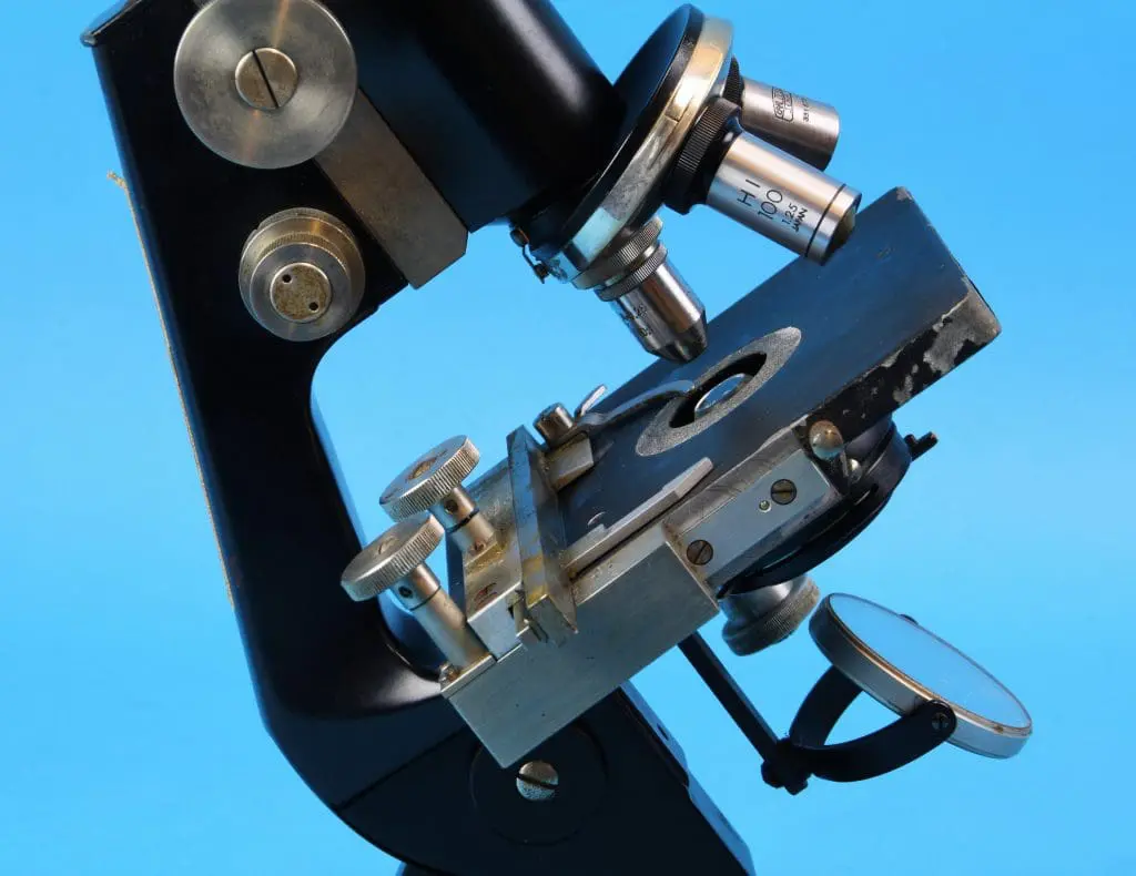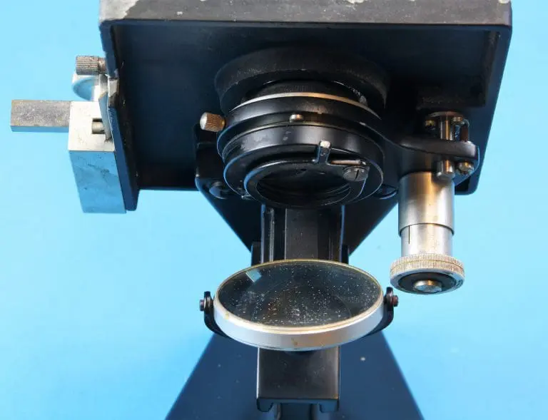 Onder de tafel een ronde spiegel, draaibaar en kantelbaar in een beugel. Verder is er een in hoogte verstelbare condensor met irisdiafragma en wegklapbare filterhouder. Met fijnscherpstelling en grofscherpstelling. De fijninstelling werkt op het blok dat de statiefarm met de tubus verbindt, in het blok de grofinstelling met tandheugel en rondsel. Het microscoop heeft een vaste monoculaire tubus met drievoudige revolver.