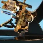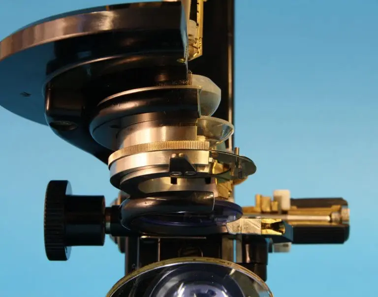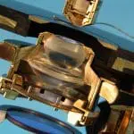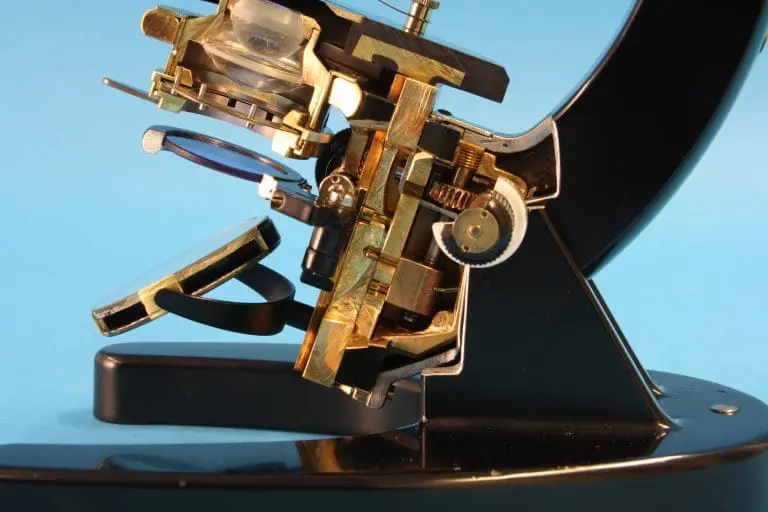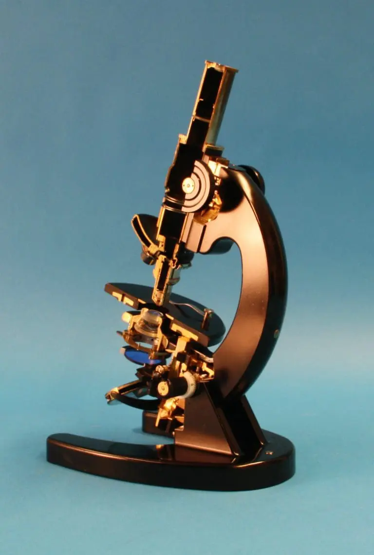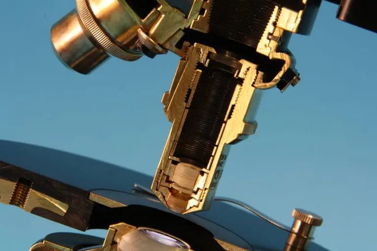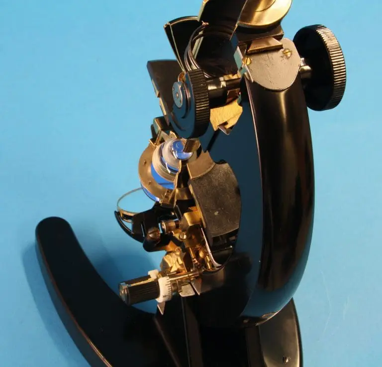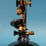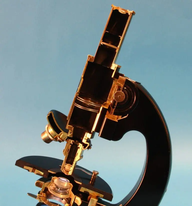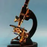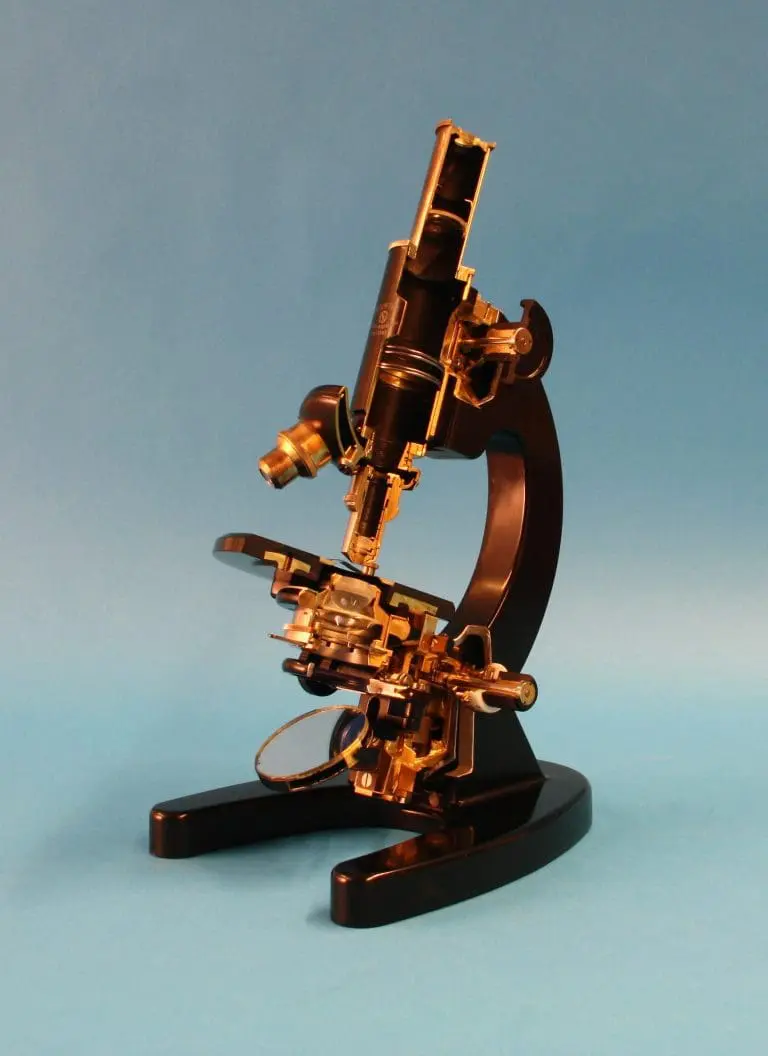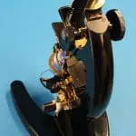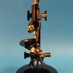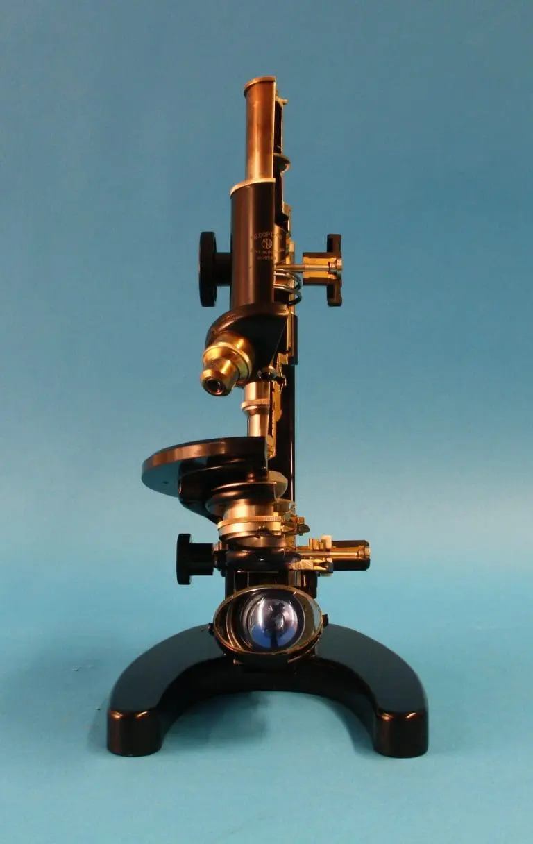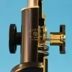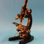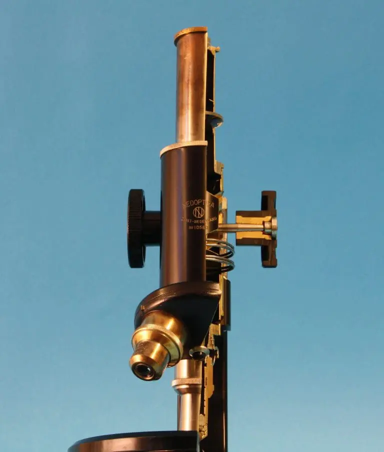 Dit is een gedeeltelijk opengewerkt exemplaar van het microscoop type ‘S’, gemaakt door de firma van dr. C.E. Bleeker in Zeist.