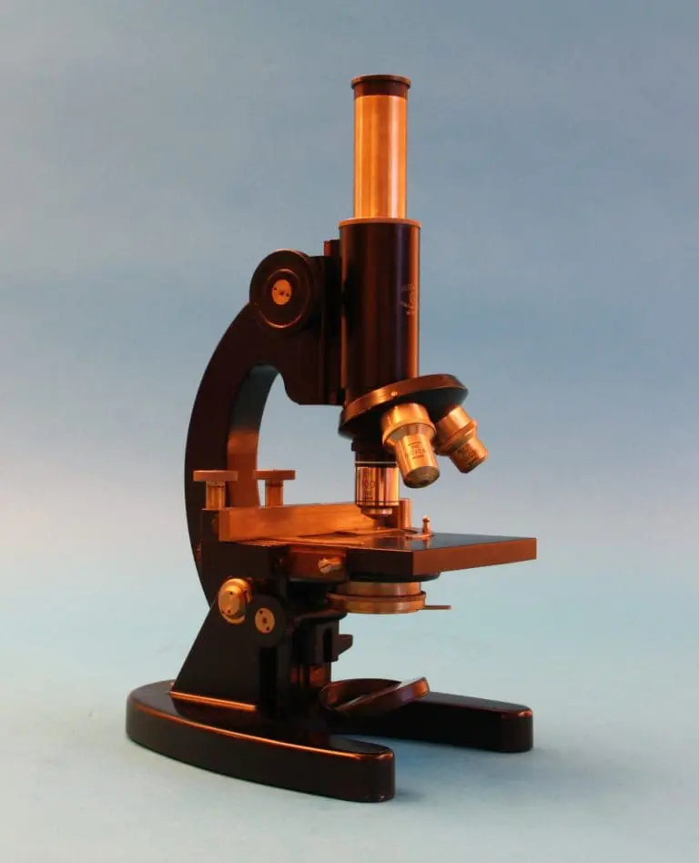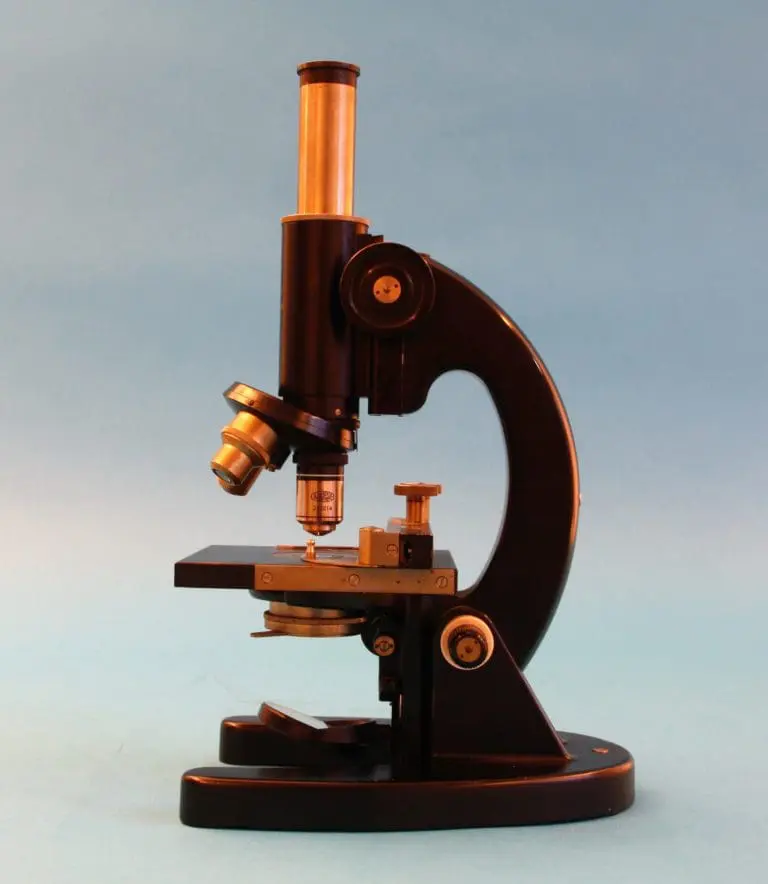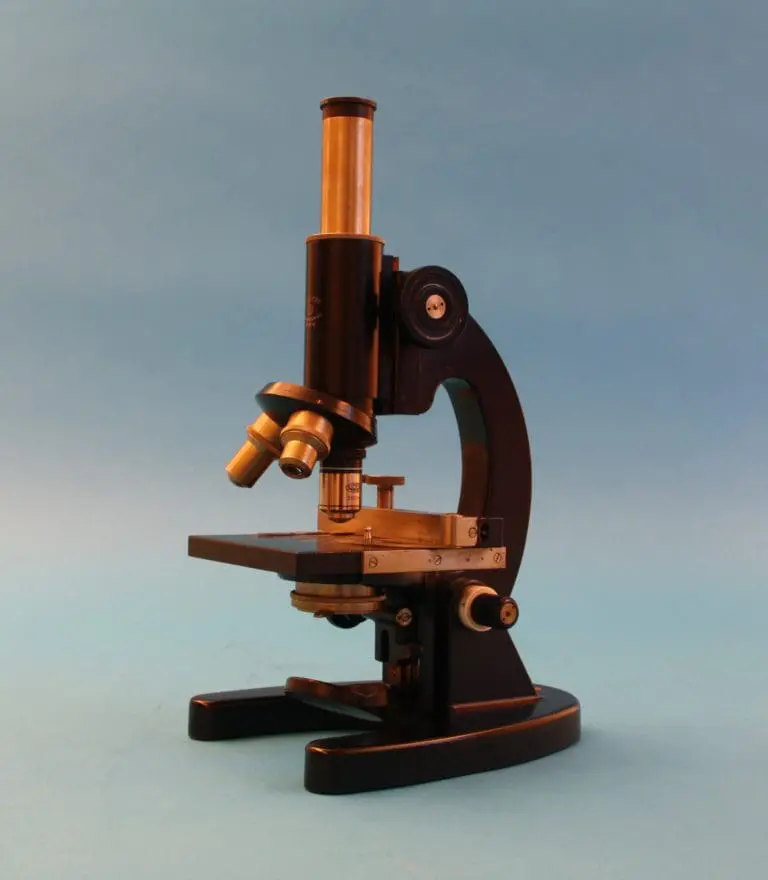 Dit microscoop type ‘S’ is gemaakt door de firma van dr. C.E. Bleeker in Zeist. Instrumenten van Bleeker werden ook verkocht onder de naam ‘Nedoptifa’, dat staat voor ‘Nederlandse Optische Fabriek’. Dit is het standaard statief van Bleeker, in de catalogus van 1962 komt deze uitvoering voor onder de telegramcode ‘midecum’. Er is een vaste vierkante tafel met een aangebouwde, afneembare preparaatgeleiding, voorzien van een met tandheugel en rondsel in hoogte verstelbare condensor met irisdiafragma en een vlakke en holle spiegel in beugel. Er is een drievoudige objectiefrevolver. In 1962 kostte dit statief 618 gulden met twee oculairen en twee objectieven erbij. Een hoop geld, een redelijke auto kostte in die tijd ongeveer driemaal dit bedrag.