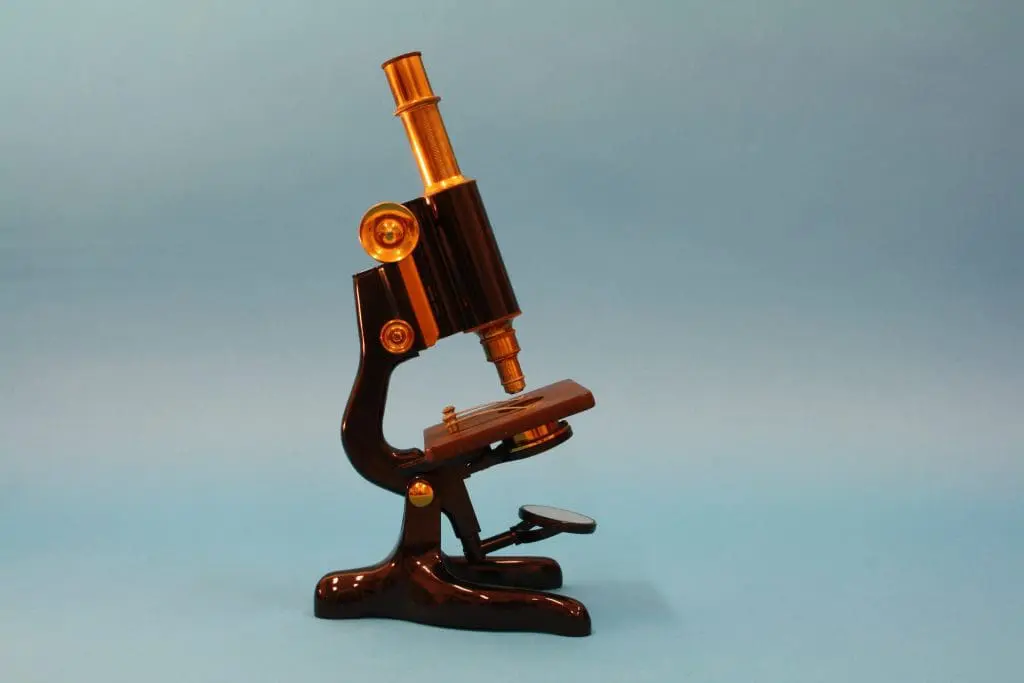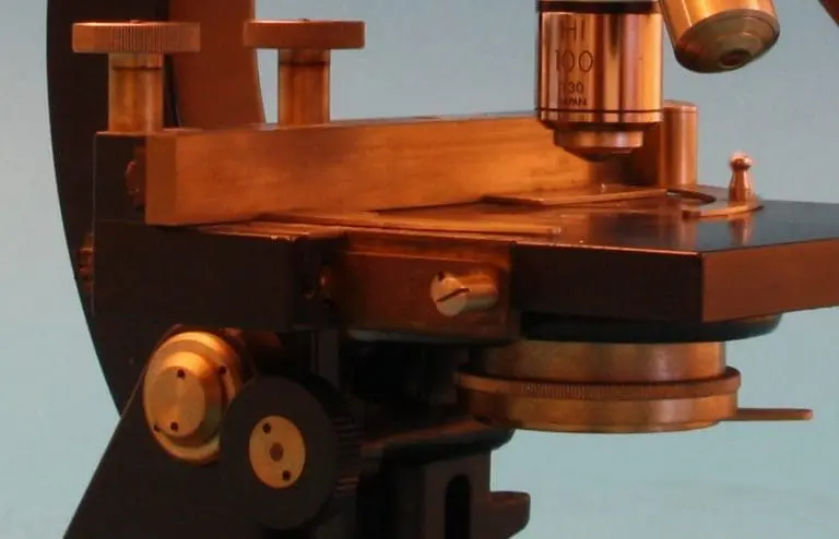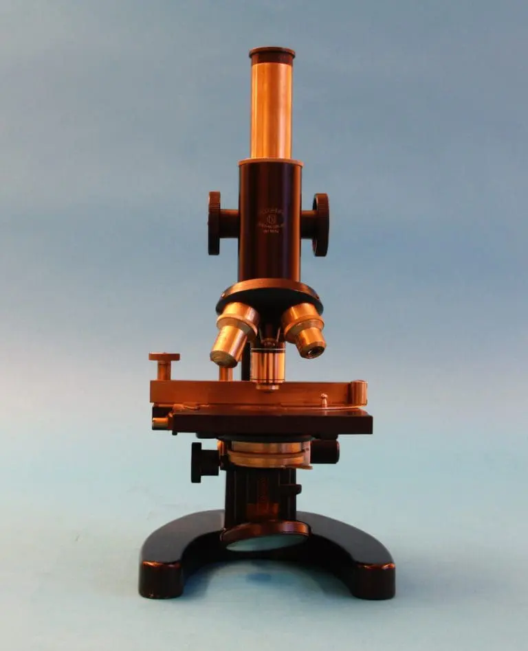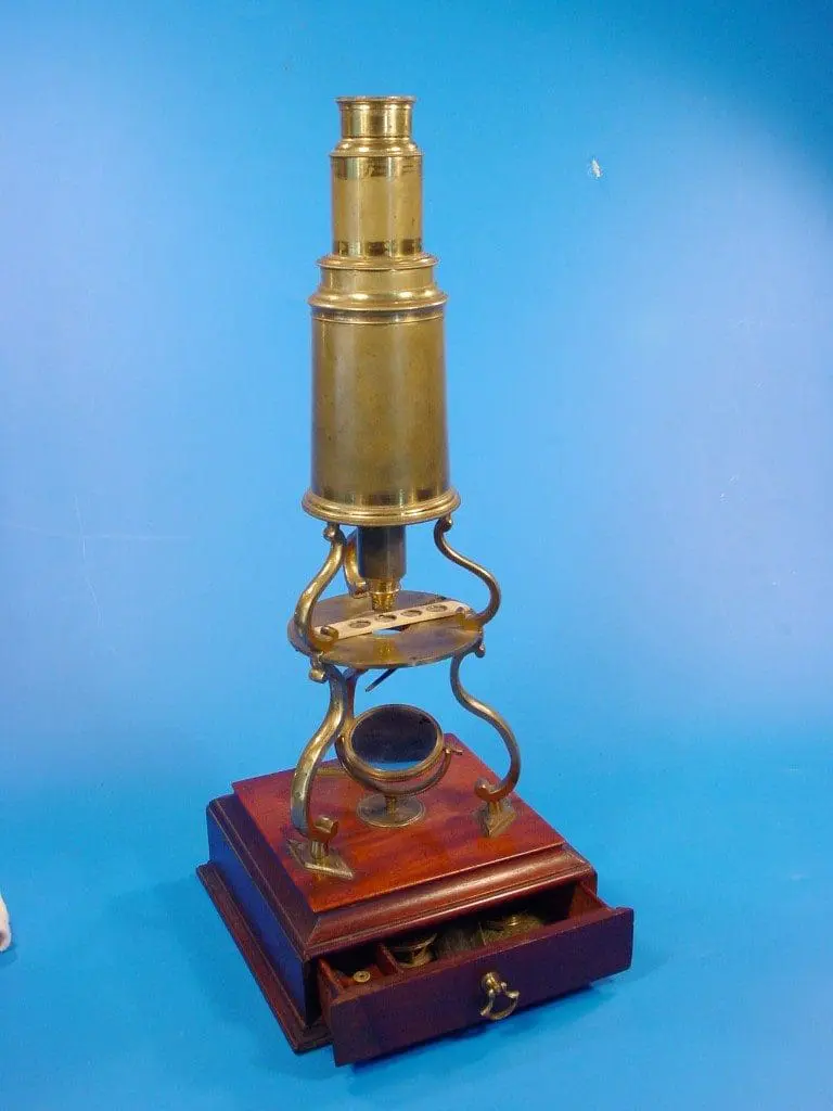 Aanwezig zijn de twee originele objectieven, N8× 0.25 en N40× 0.65 en één oculair (N10× ?). Het derde objectief, een 100 maal vergrotend Japans olie-immersieobjectief met een numerieke apertuur 1.30 is niet origineel.