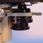 Objectief 100×: vertoont wat sferische ondercorrectie, de buigingsringen zijn wat onregelmatig van vorm (hetgeen veroorzaakt wordt door de beschadiging op het bovenste lenselement), het beeld is duidelijk gekromd. De diatomee Surirella gemma wordt in stippen opgelost.