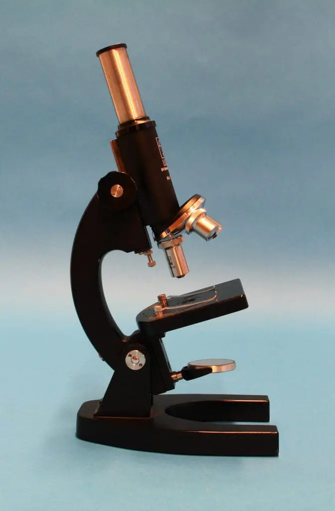 Microscoopstatief van gegoten aluminium, lichtgrijs gemoffeld. In de voet ingebouwd de lamp met condensor en prisma. Onderaan de statiefarm een blok met daarin de grof- en de fijninstelling die op de tafel werken. De arm eindigt in een ring waar bovenop via een bajonet de binoculairtubus is bevestigd, onderaan de ring de viervoudige objectiefrevolver. Er is een uit twee elementen bestaande condensor volgens Berek. De brandpuntsafstand van de totale condensor bedraagt 12.95 mm, bij zwakke objectieven wordt alleen het onderstuk gebruikt door het bovenste element weg te klappen. De brandpuntsafstand van dit onderstuk bedraagt 48.09 mm. Het irisdiafragma bevindt zich tussen beide elementen in het brandvlak van het bovenste element. Bij de condensor is een filterhouder. Met grote kruistafel.