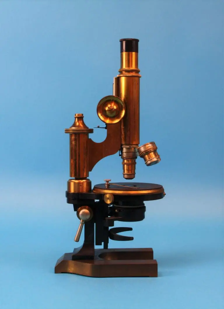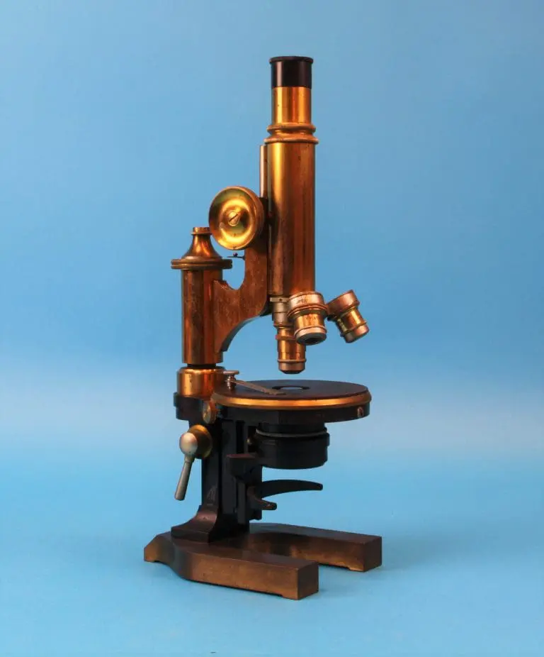 Dit microscoop is afkomstig uit de collectie van prof. dr. J.S. Ploem.