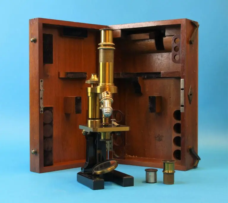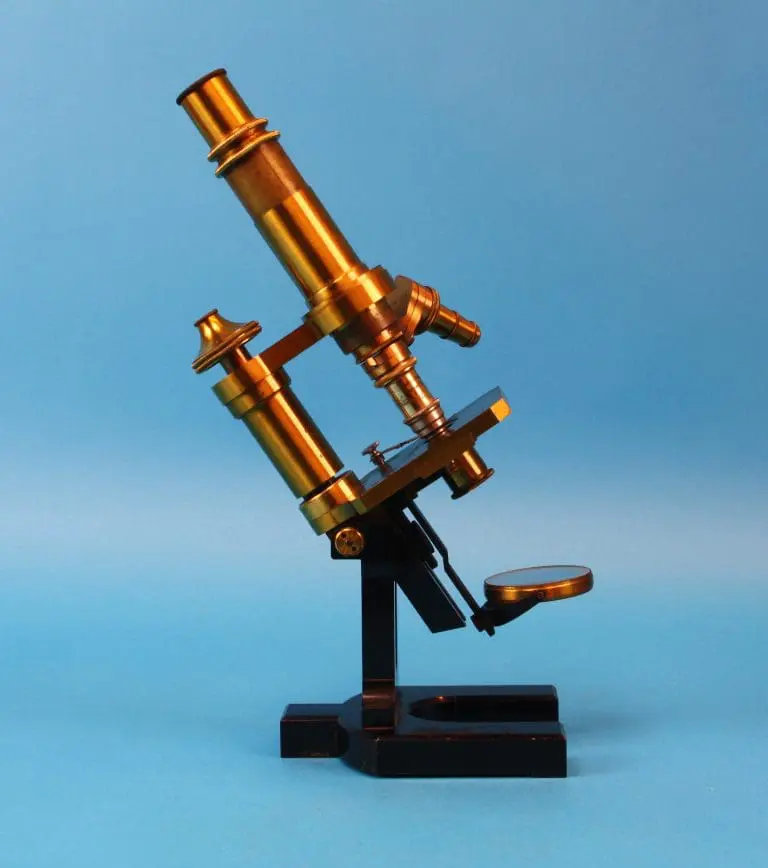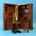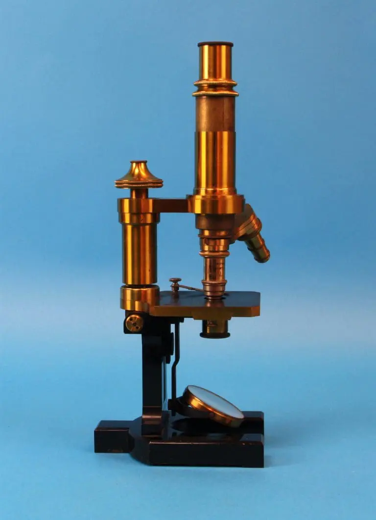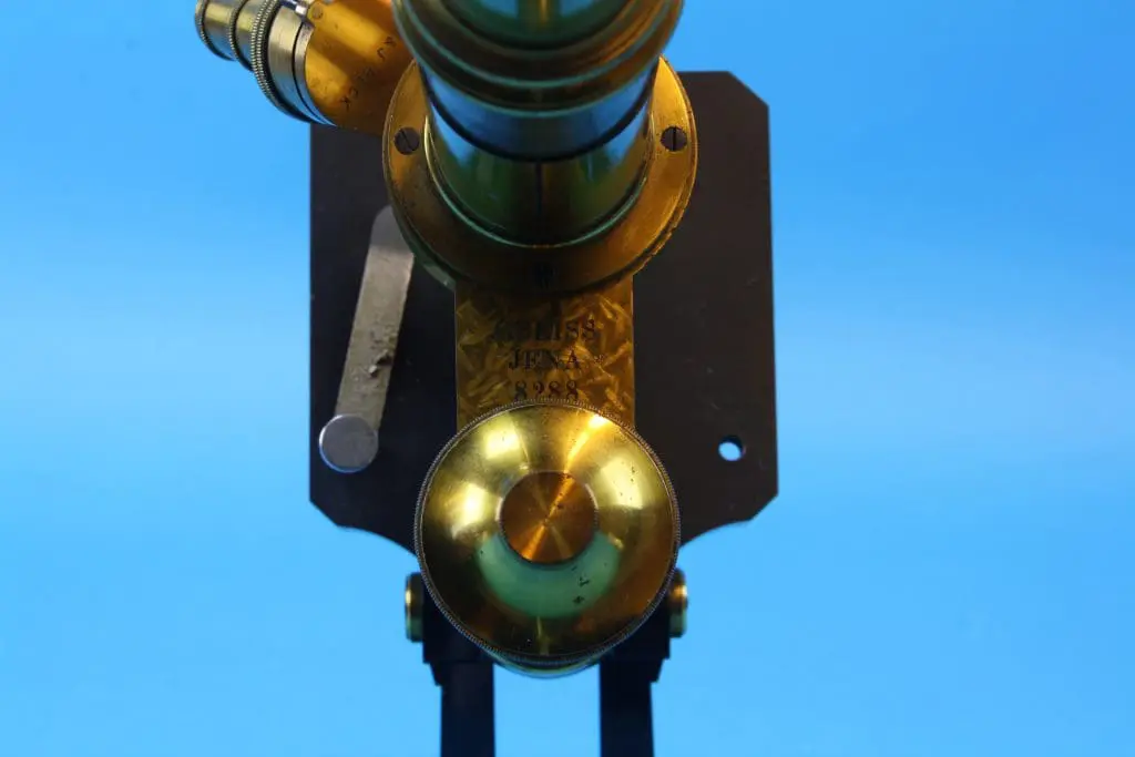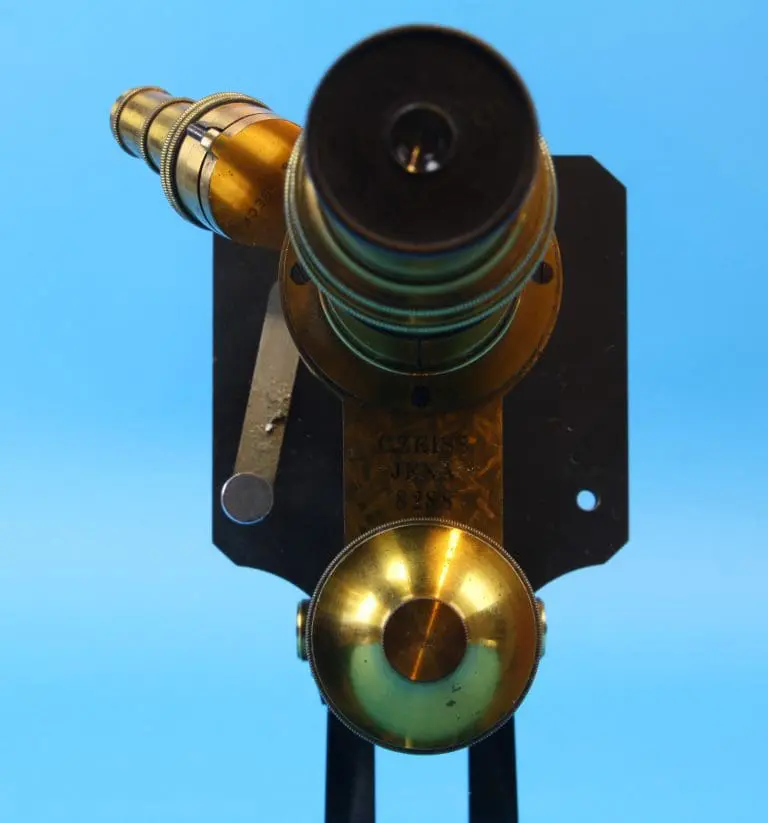 Dit microscoop is afkomstig uit de collectie van prof. dr. J.S. Ploem.