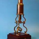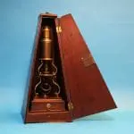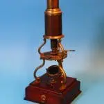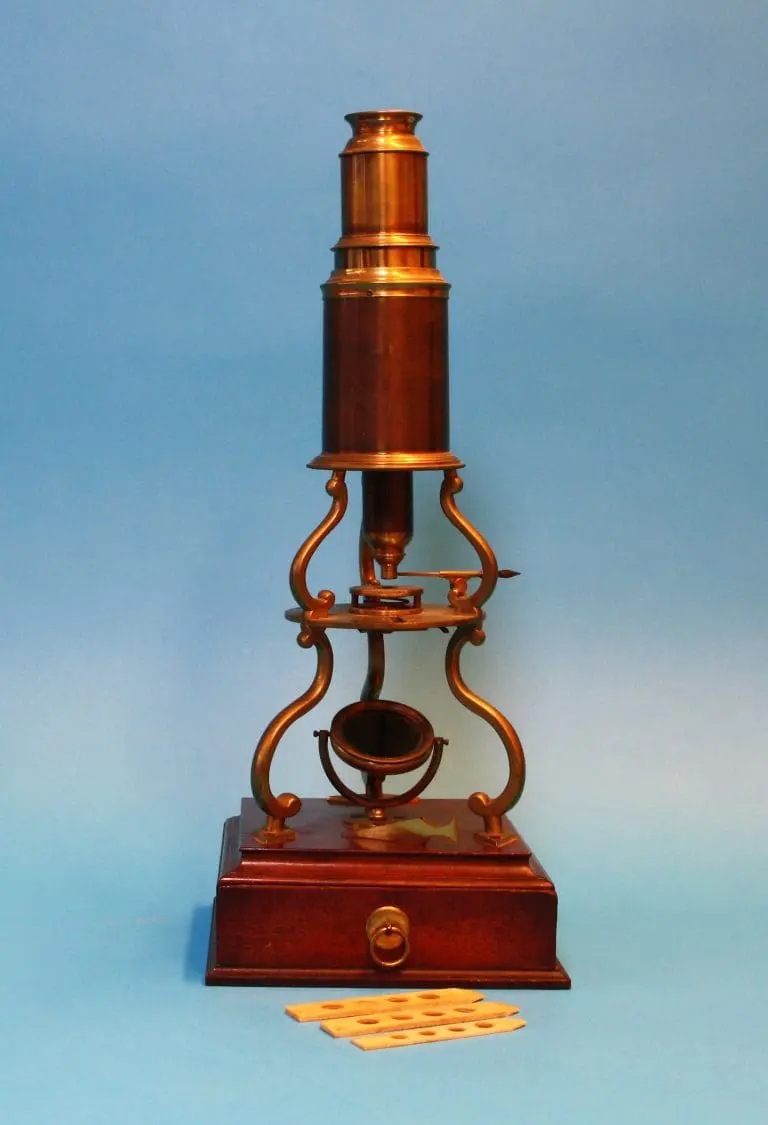 Dit microscoop is afkomstig uit de collectie van prof. dr. J.S. Ploem.