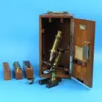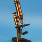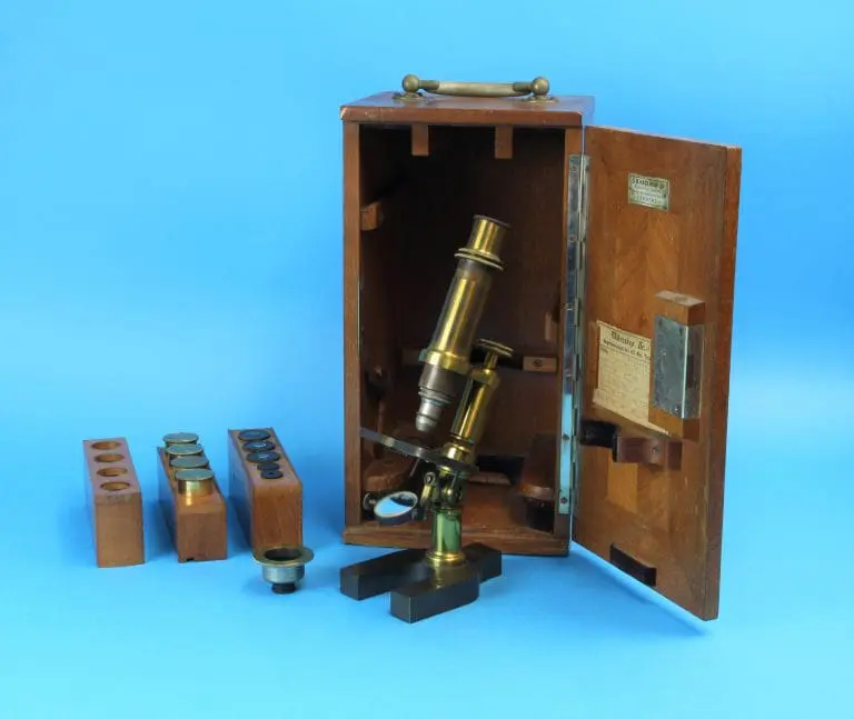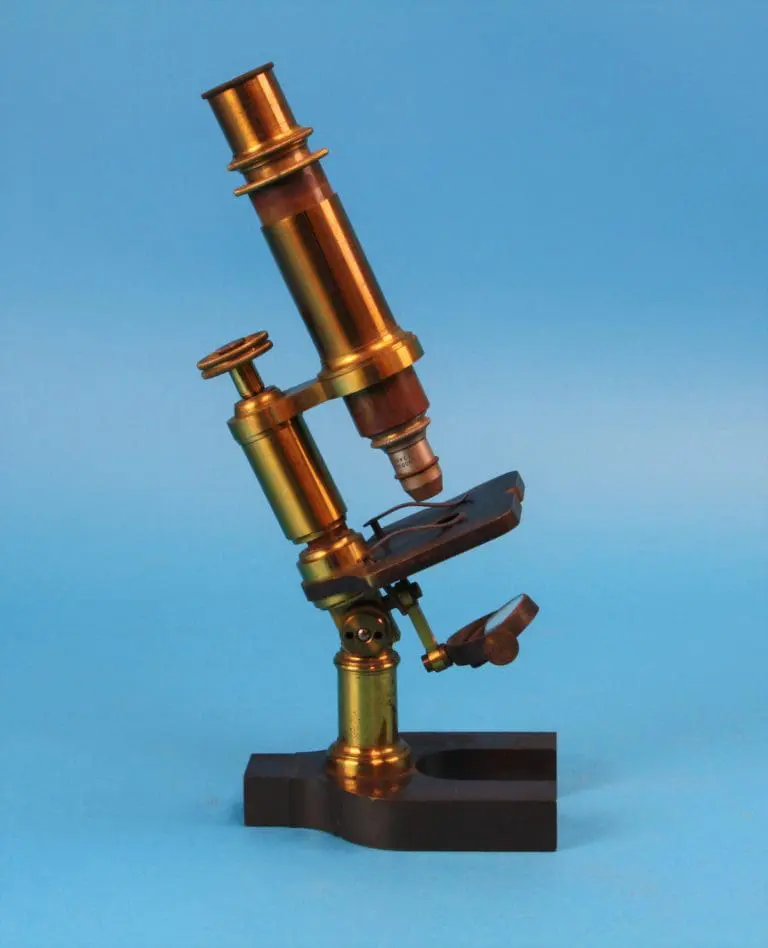Dit microscoop is afkomstig uit de collectie van prof. dr. J.S. Ploem.