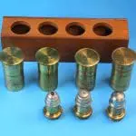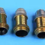 Verder is er nog een huls die in een condensorvatting past, met drie diafragmadoppen. Deze huls en ook de Leitz-objectieven en oculairen horen bij het Leitz-microscoop dat oorspronkelijk in deze kist gezeten heeft.