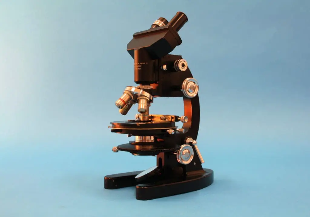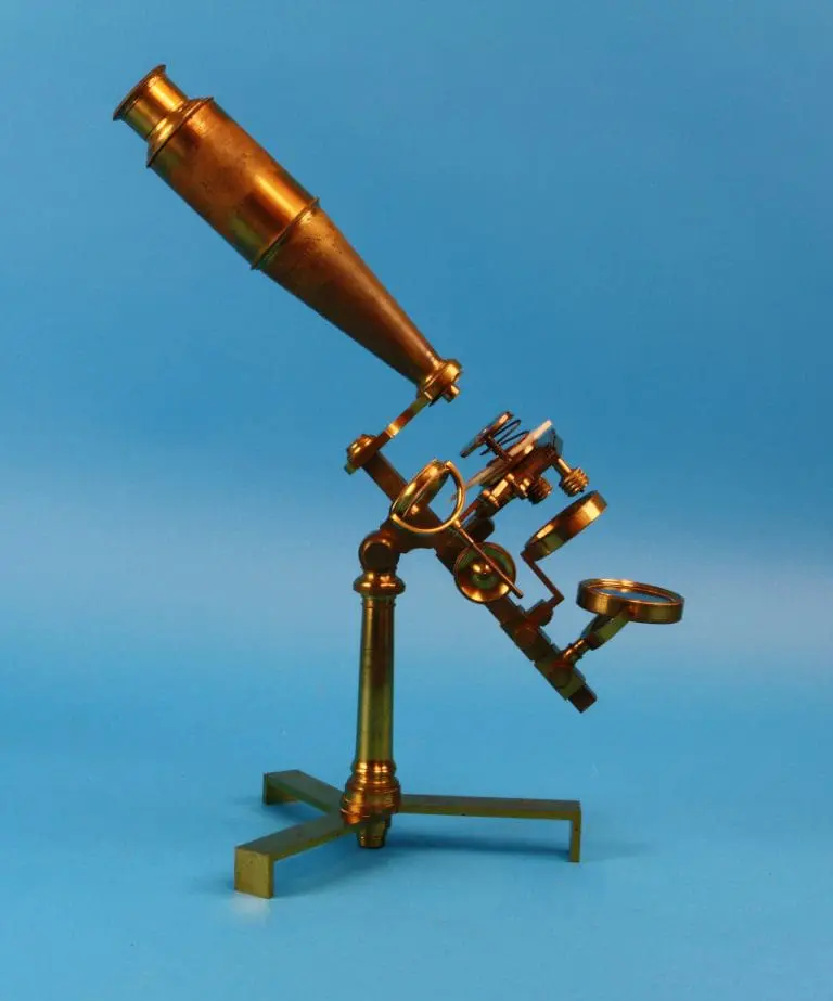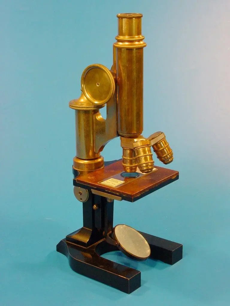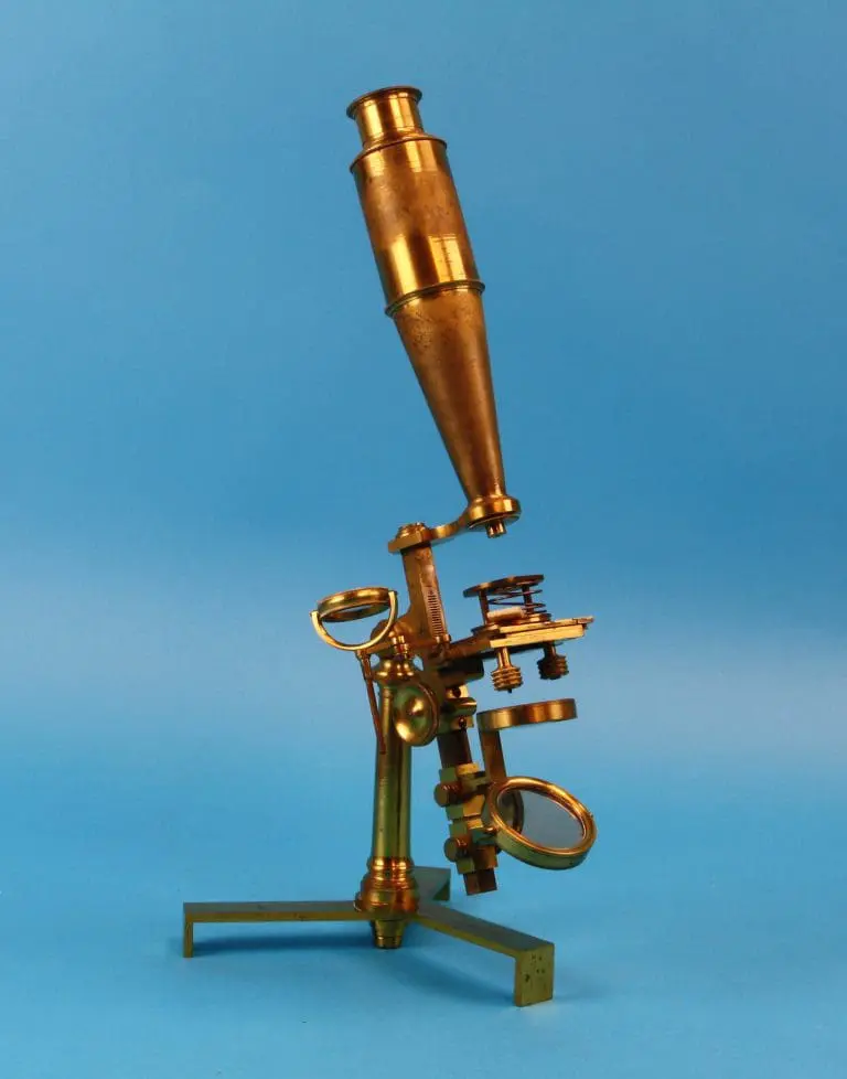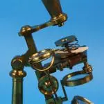 Dit microscoop is afkomstig uit de collectie van prof. dr. J.S. Ploem.