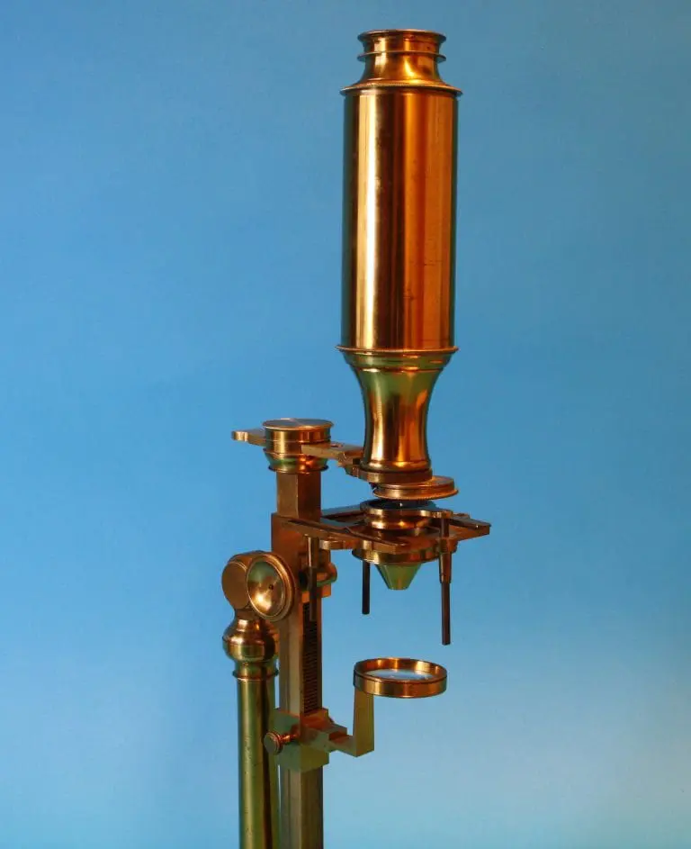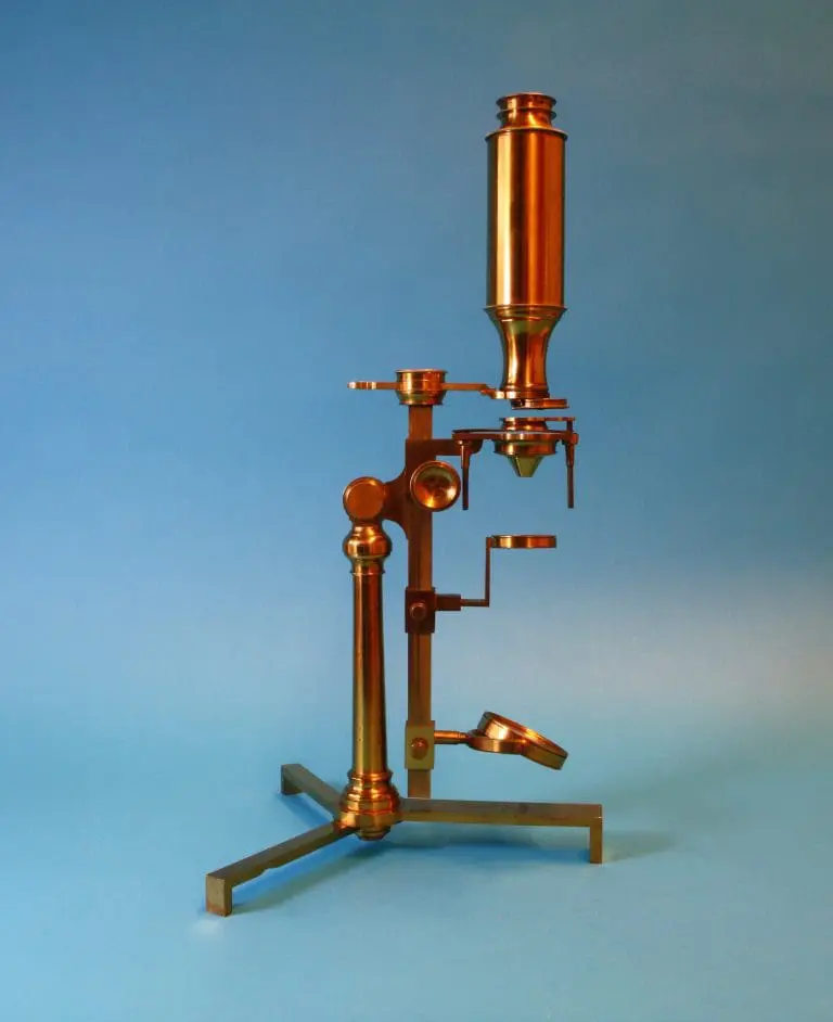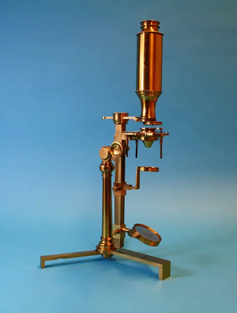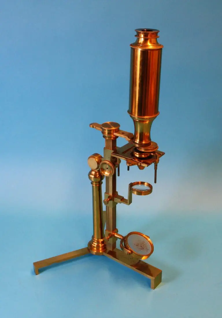 Dit microscoop is afkomstig uit de collectie van prof. dr. J.S. Ploem.