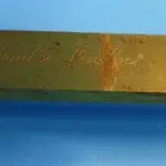 In een platte mahoniehouten kist. In het deksel is een messing plaatje ingelaten waarin de naam van de eigenaar is gegraveerd: Joseph M. Nixson.