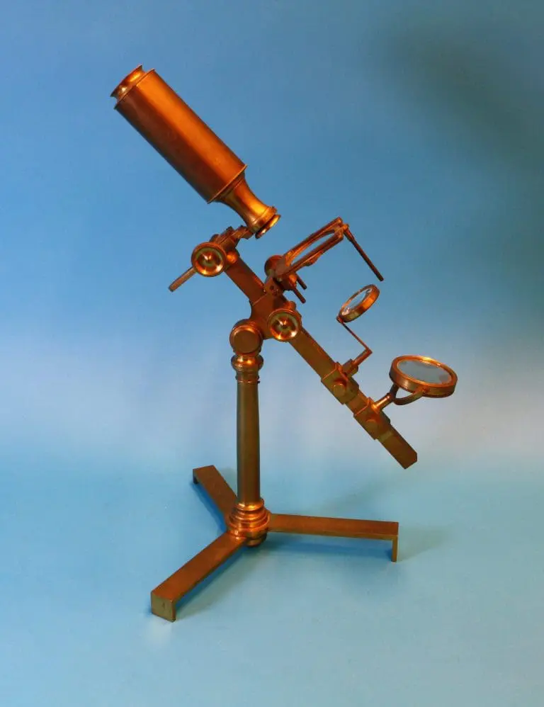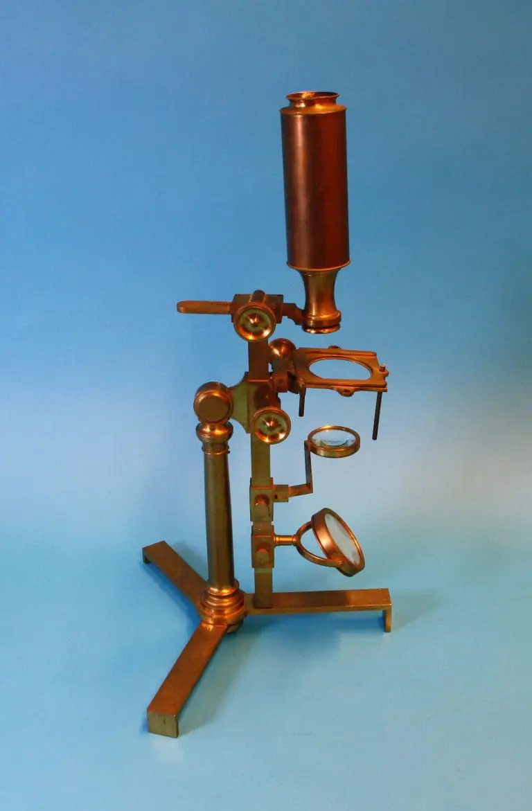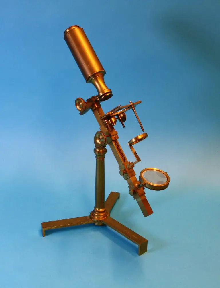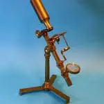 Dit microscoop is afkomstig uit de collectie van prof. dr. J.S. Ploem.