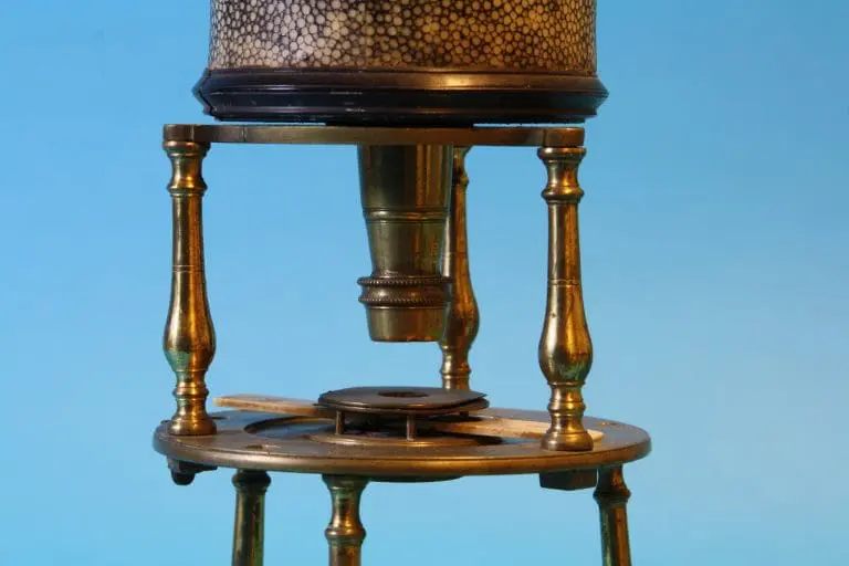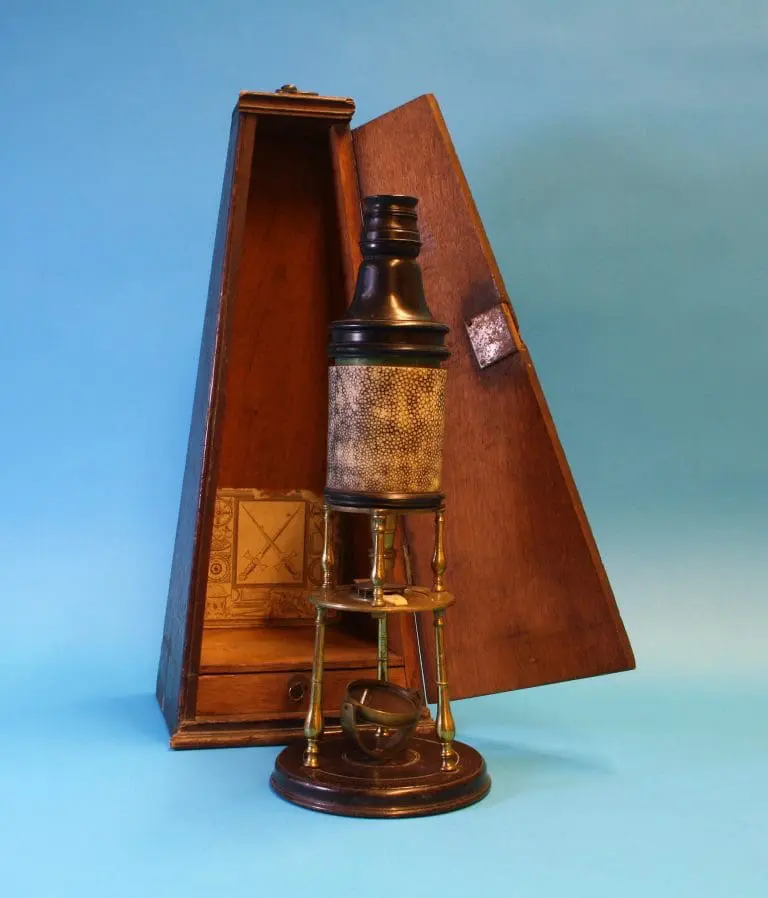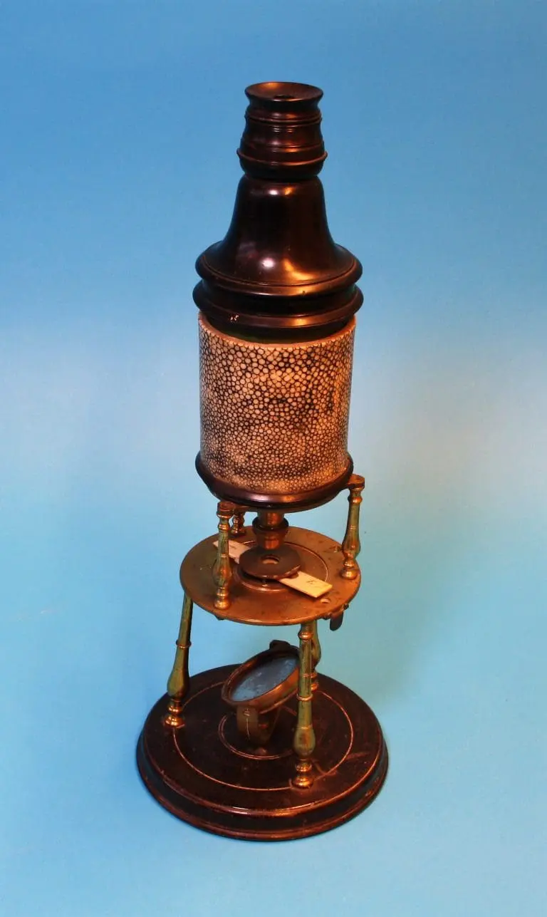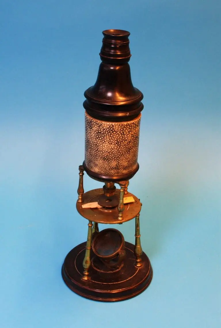 Olivia Brown (The Whipple Museum of the History of Science, Catalogue 7, Microscopes, 1986) beschrijft dit type microscoop onder catalogus nummer 80, ze dateert het op ca. 1735.