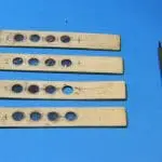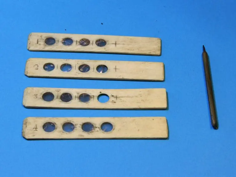 Verder zijn er vier benen preparaathouders met in elk vier tussen mica ruitjes gevatte preparaten. Er is nog een messing pennetje aanwezig.